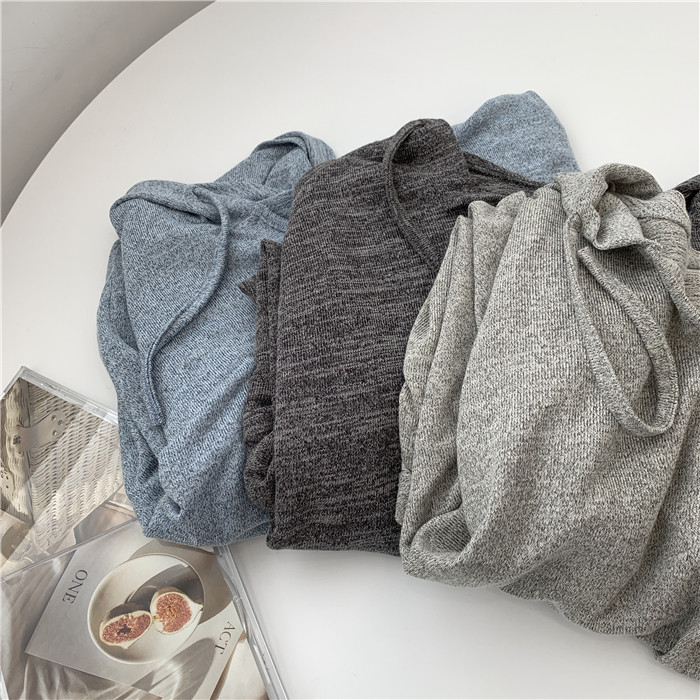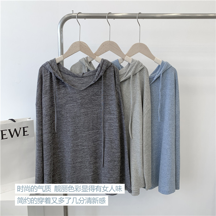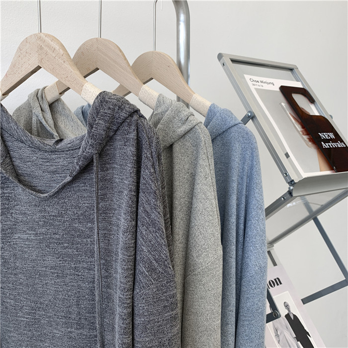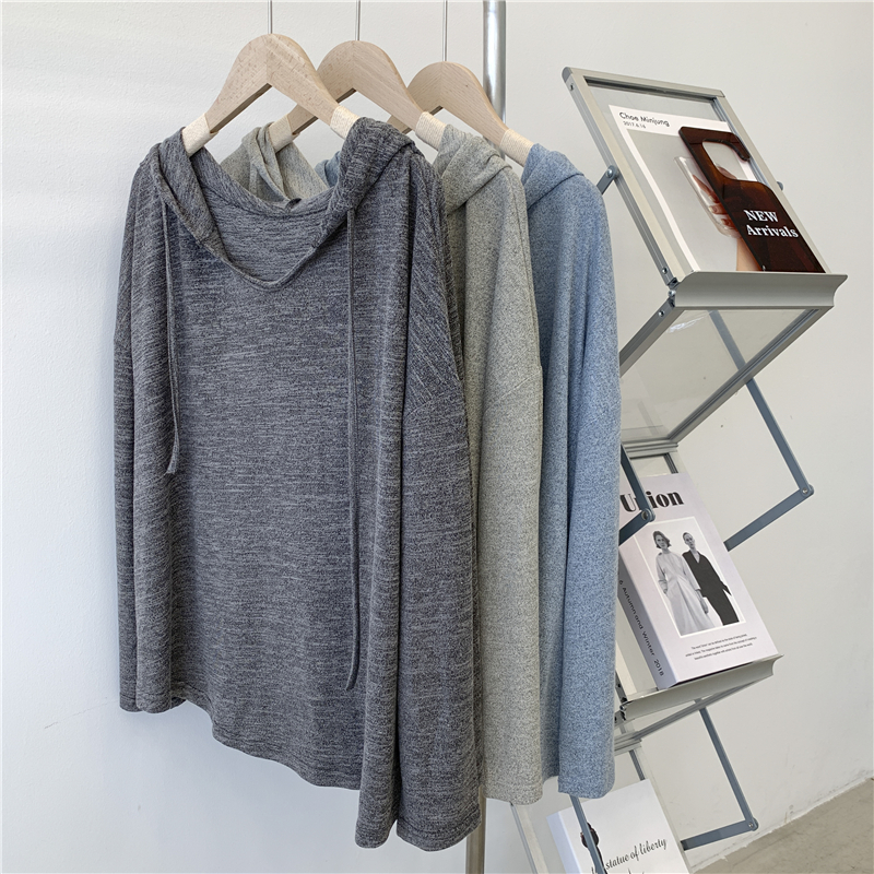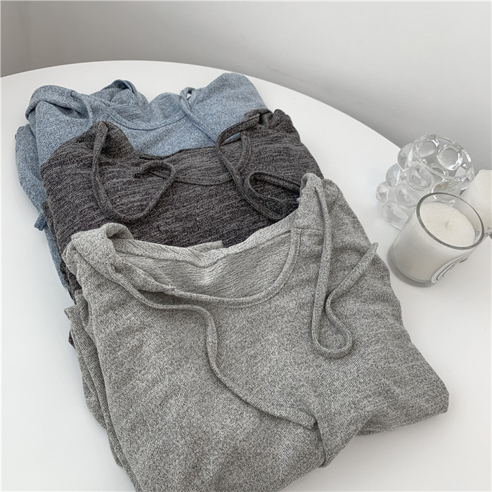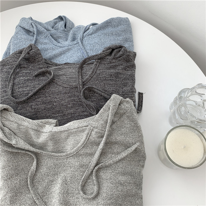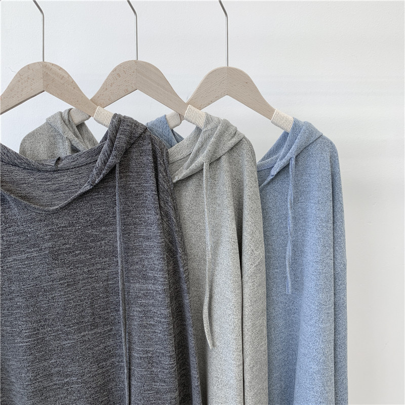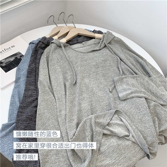 Трикотажное платье с капюшоном, тонкий лонгслив, балахон для отдыха, оверсайз