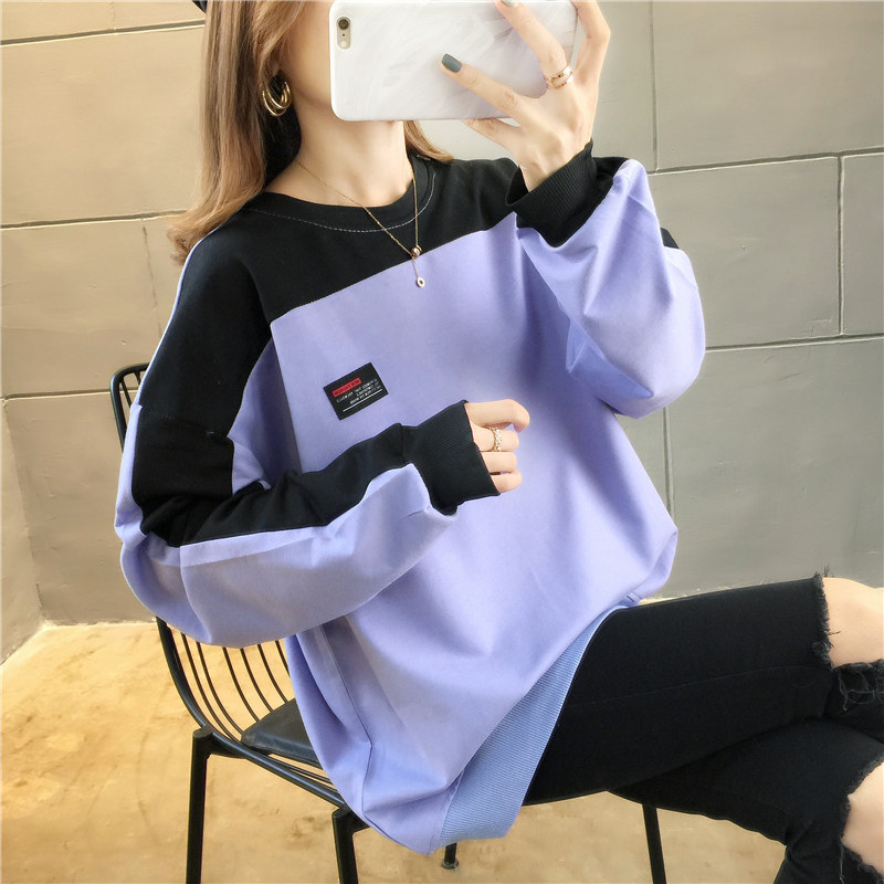Fat MM, ранняя осень, корейская новая тонкая толстовка, женская свободная, в ленивом стиле, большая версия, универсальные топы с длинными рукавами
