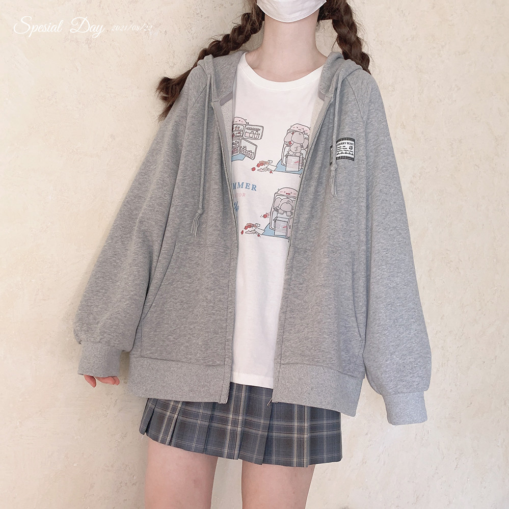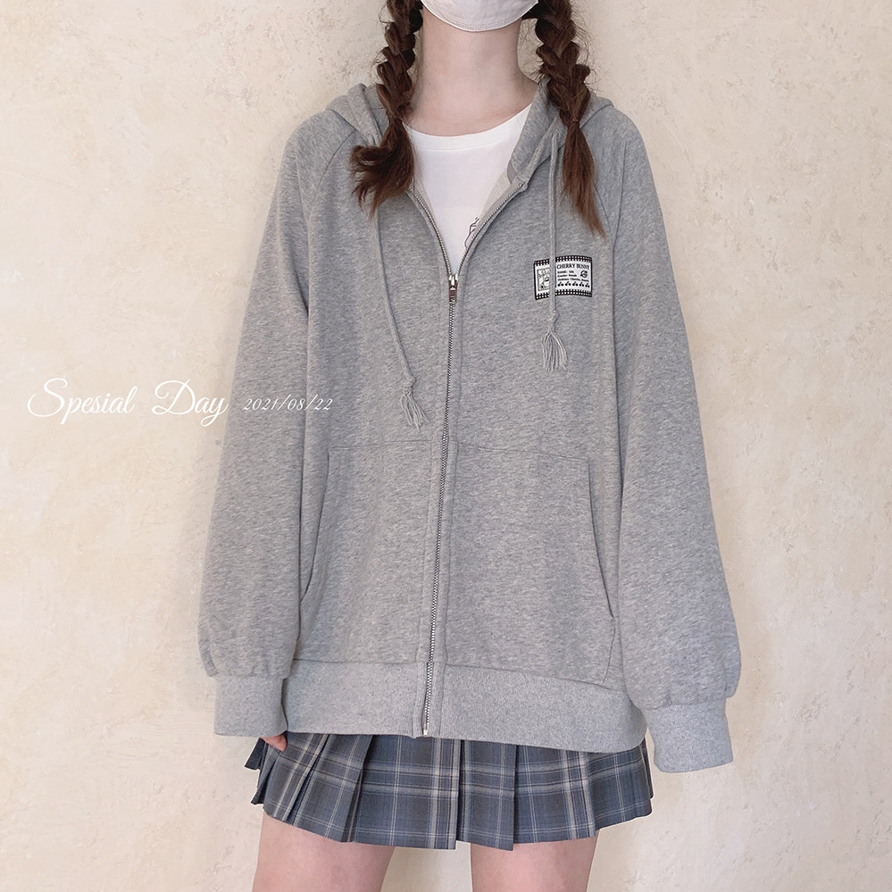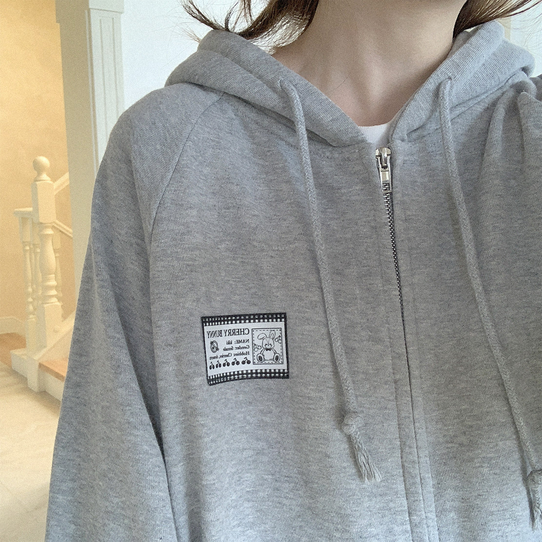 Ретро пластырь, хлопковая толстовка с капюшоном с молнией, свободный крой