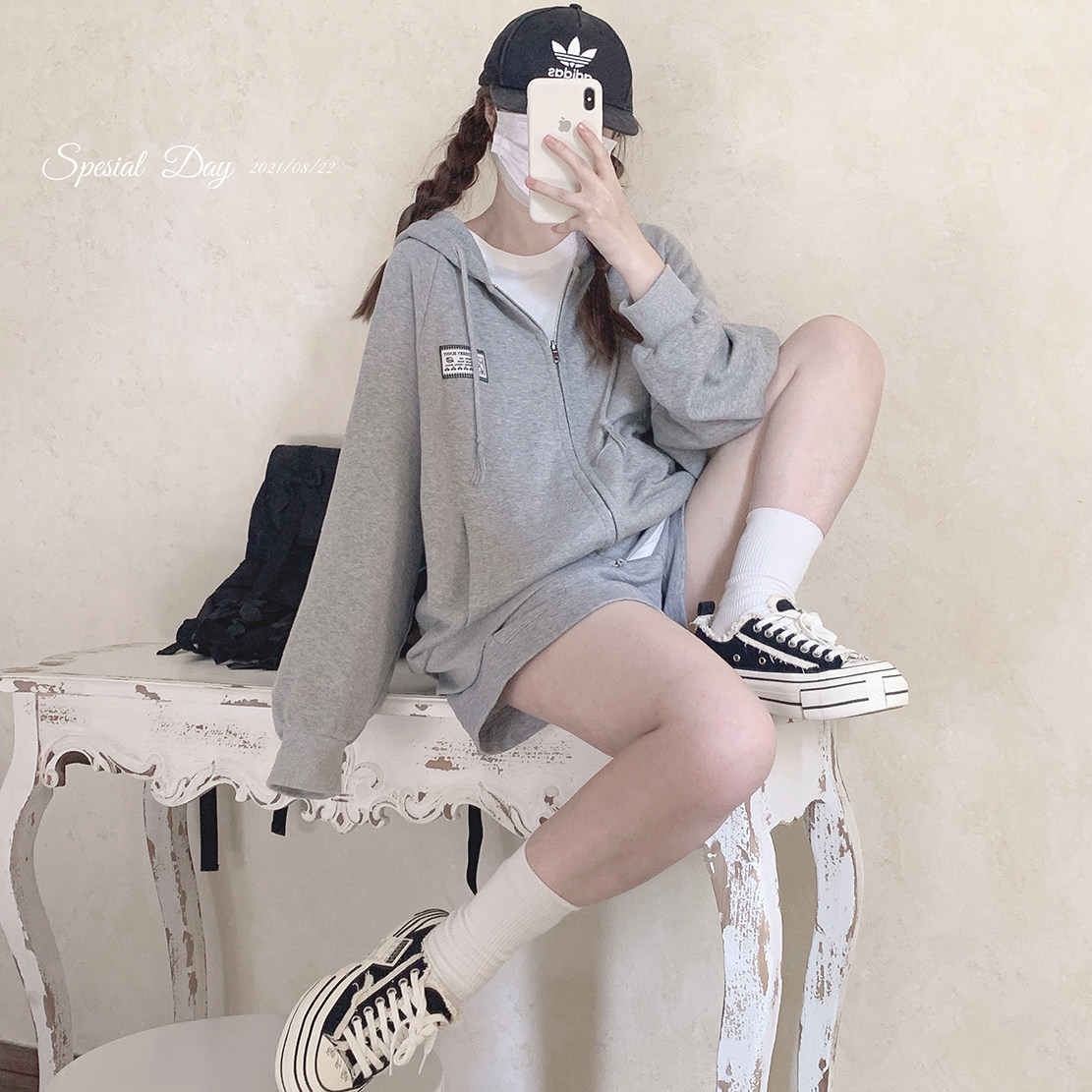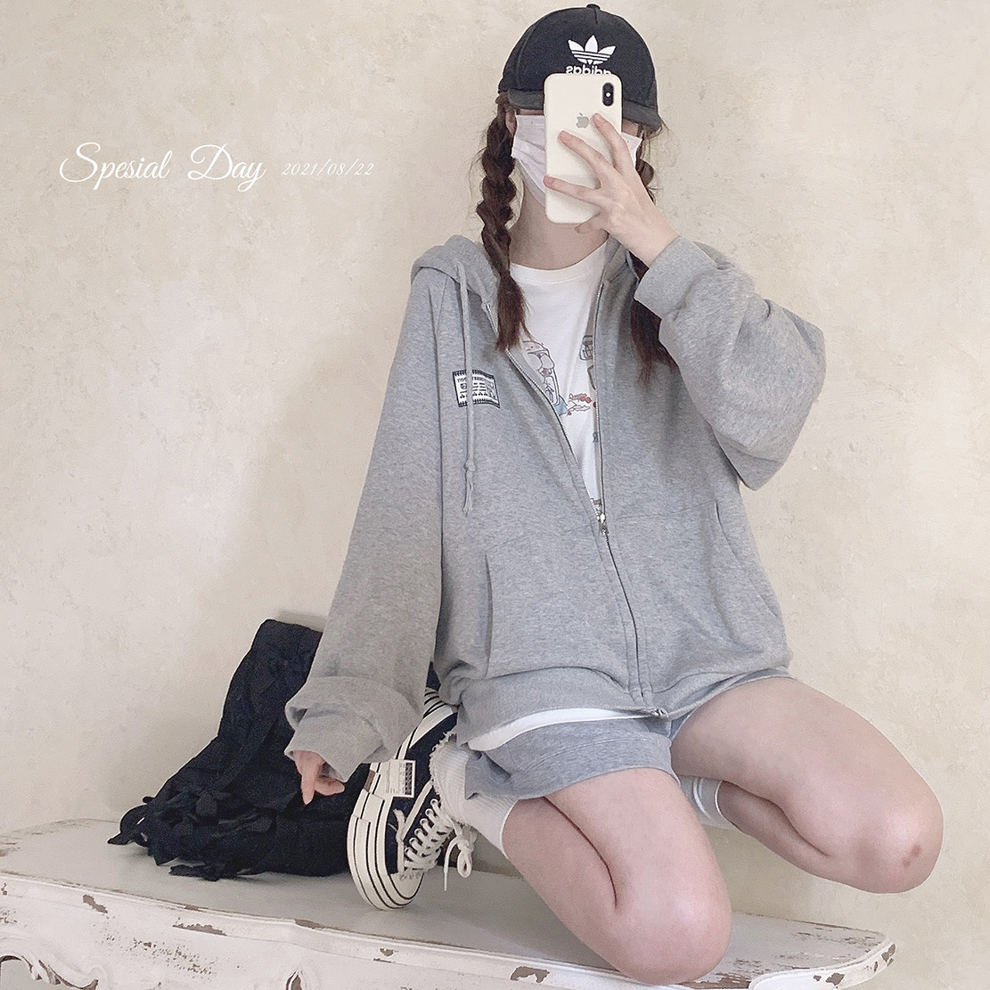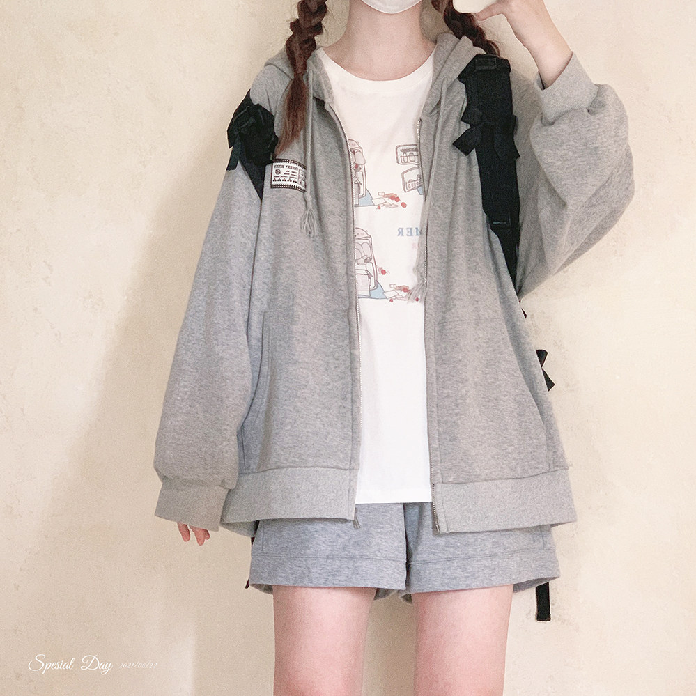 Ретро пластырь, хлопковая толстовка с капюшоном с молнией, свободный крой