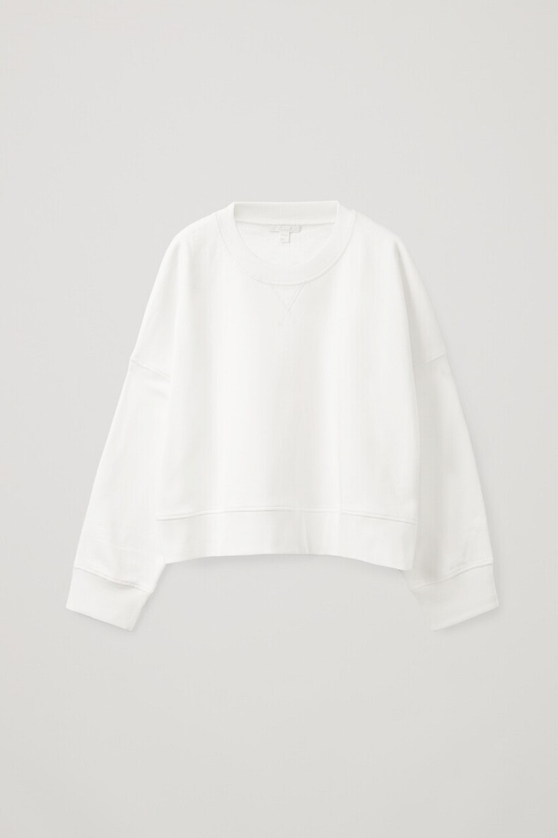 COS Белый летний лонгслив с круглым воротником, оверсайз, сезон 2021