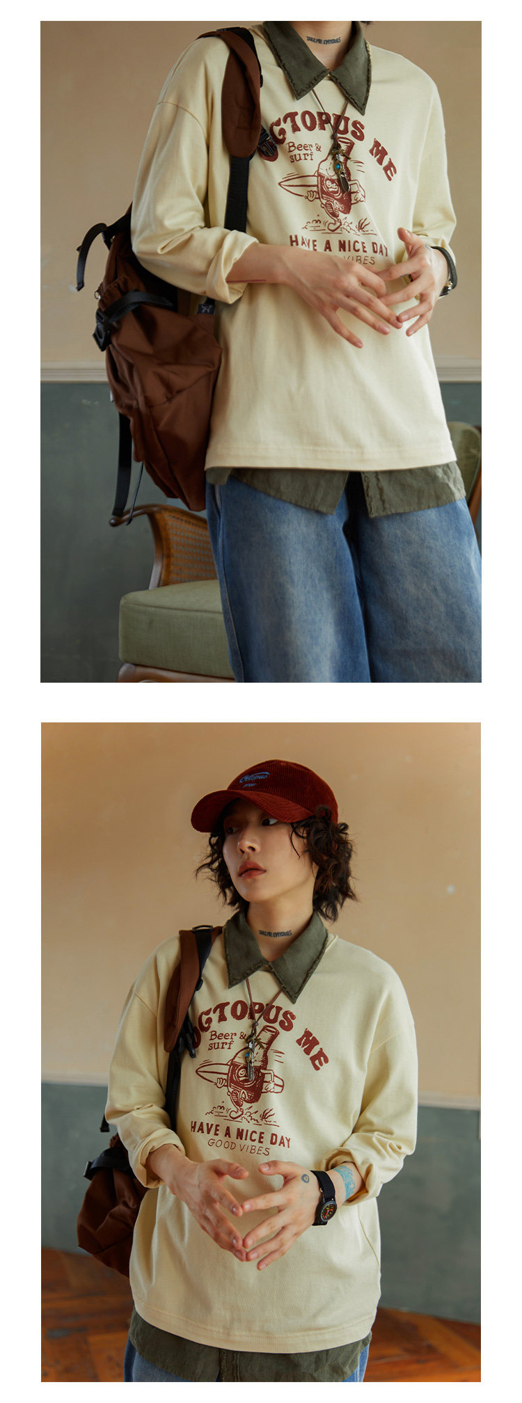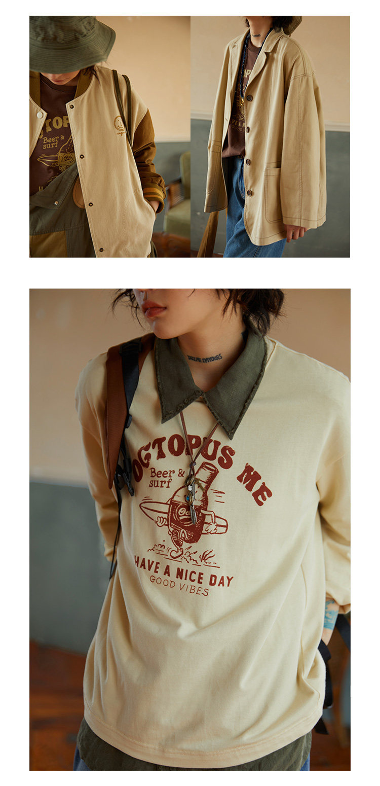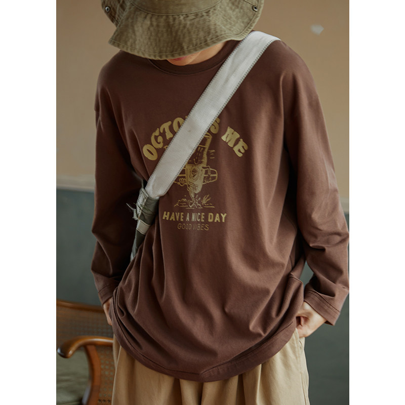 Осенняя тонкая толстовка, дизайнерский лонгслив с круглым воротником, в американском стиле, оверсайз, тренд сезона