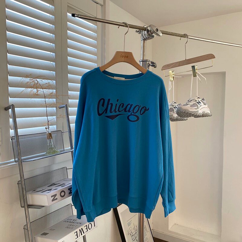 Осенний лонгслив с круглым воротником, толстовка, коллекция 2021, свободный крой, оверсайз