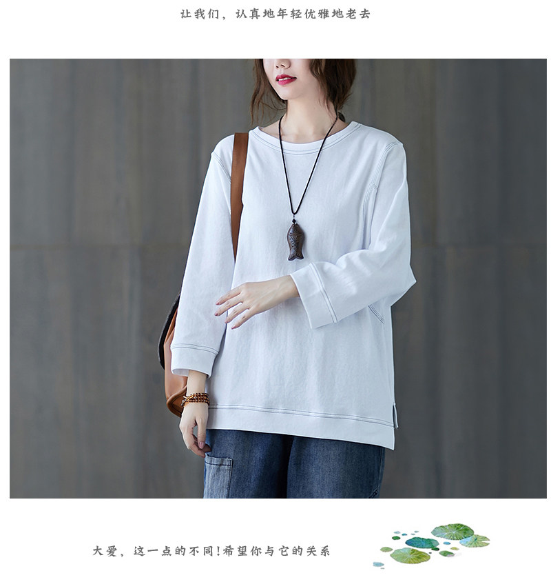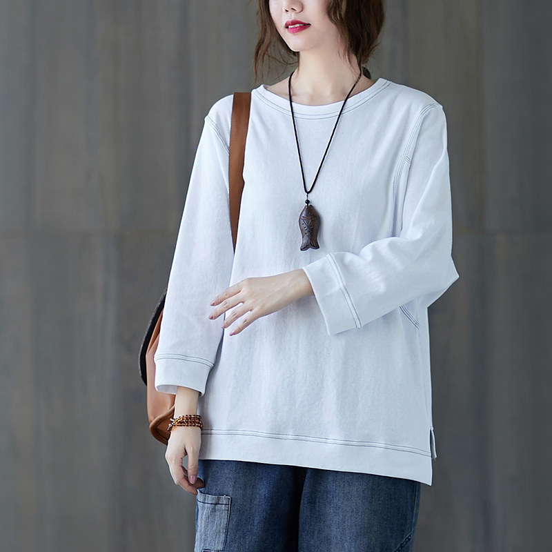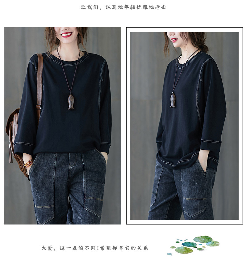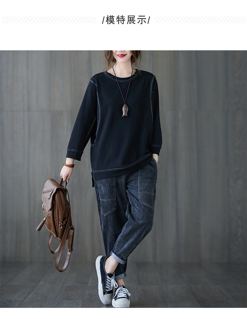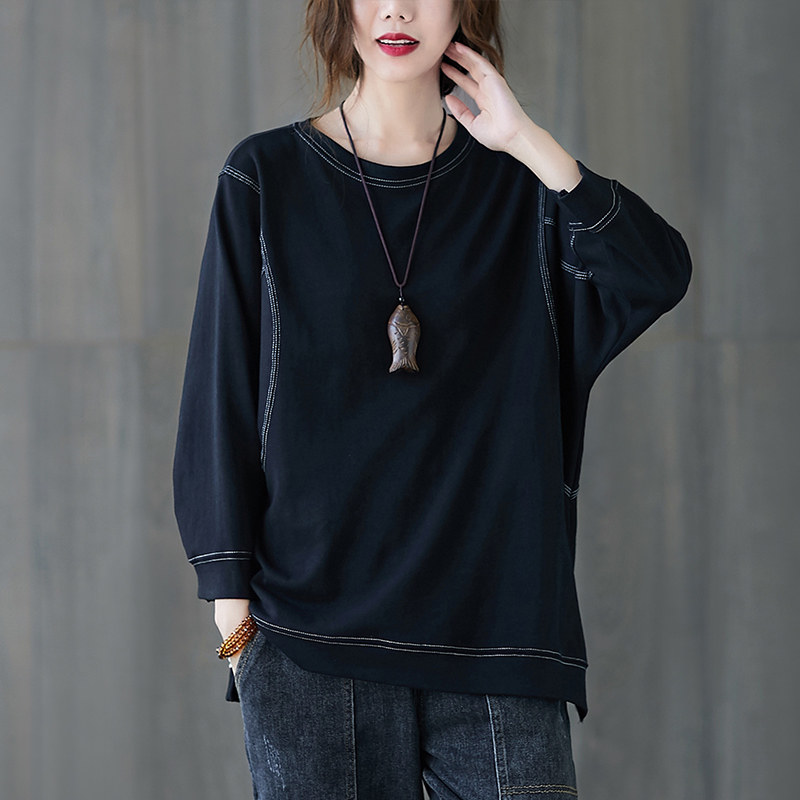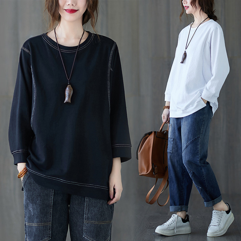 Демисезонный лонгслив с круглым воротником, футболка, большой размер, подходит для полных девушек, в западном стиле, оверсайз