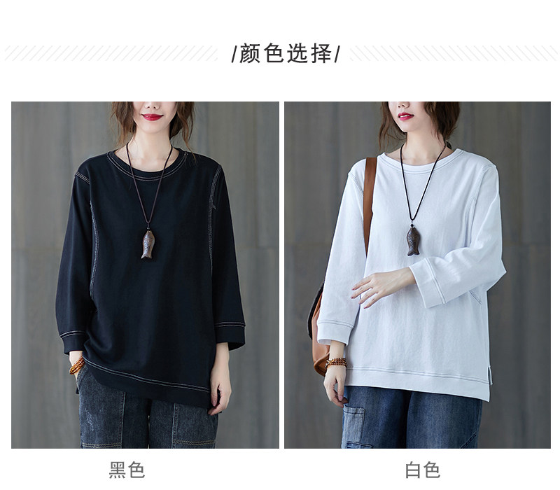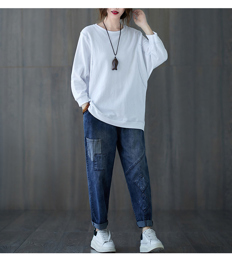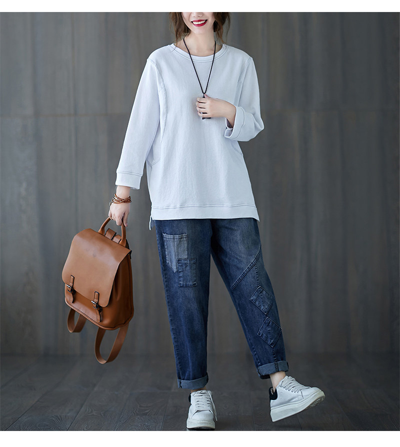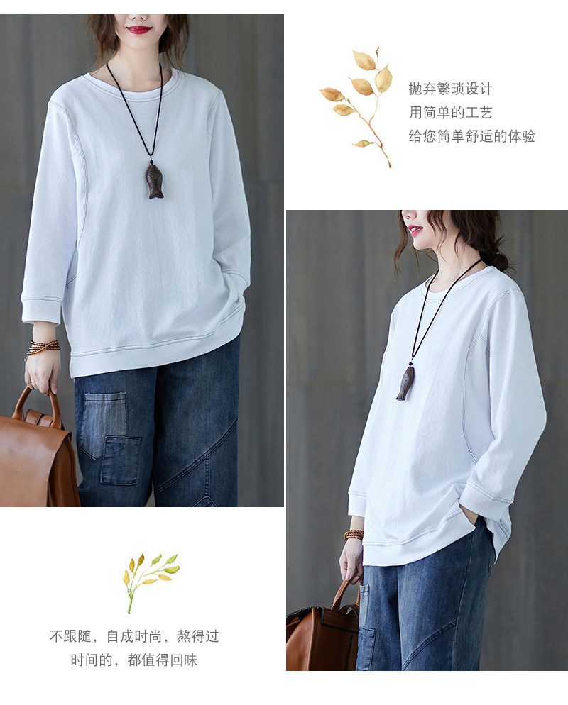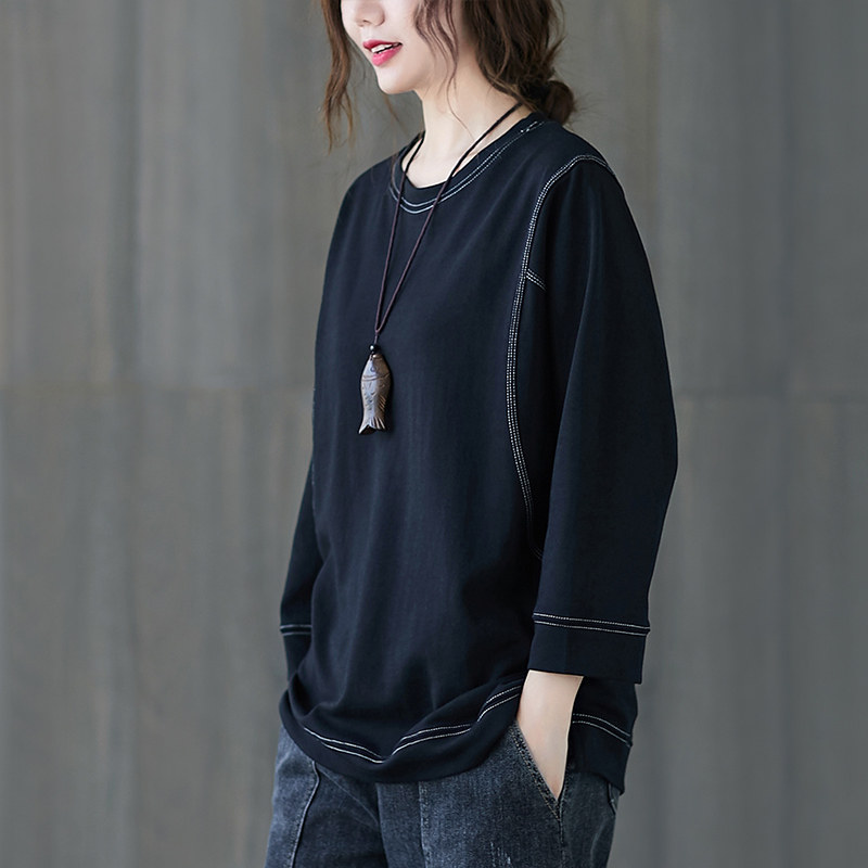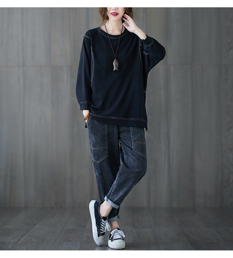 Демисезонный лонгслив с круглым воротником, футболка, большой размер, подходит для полных девушек, в западном стиле, оверсайз