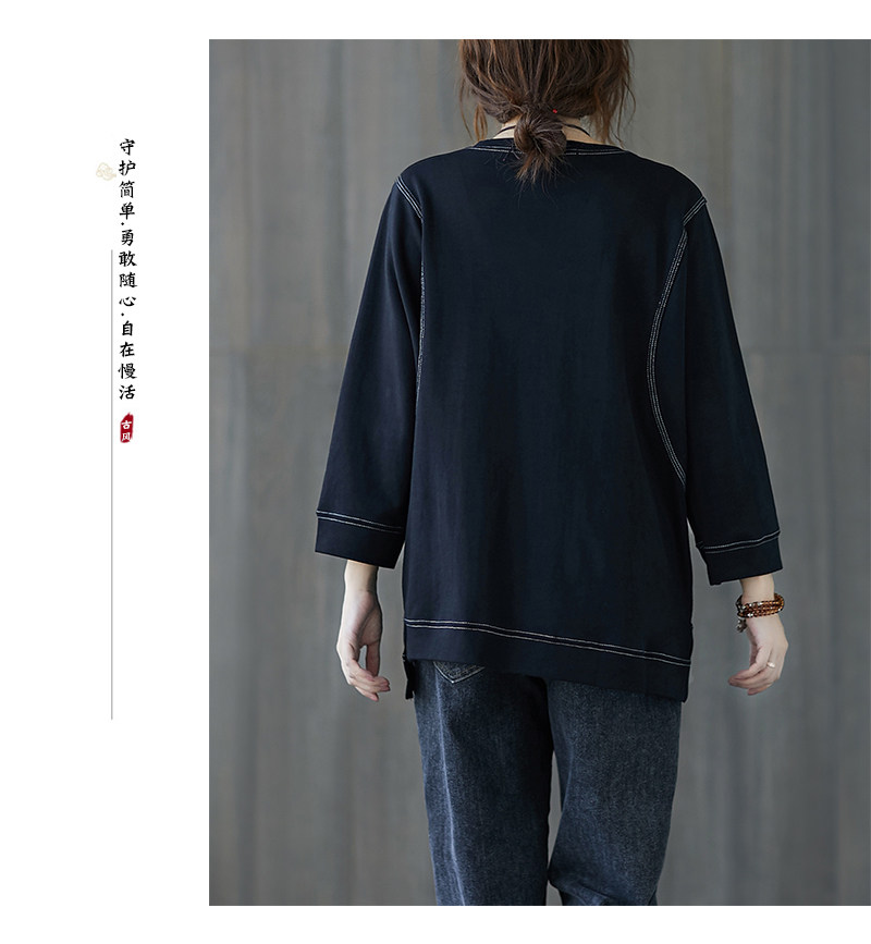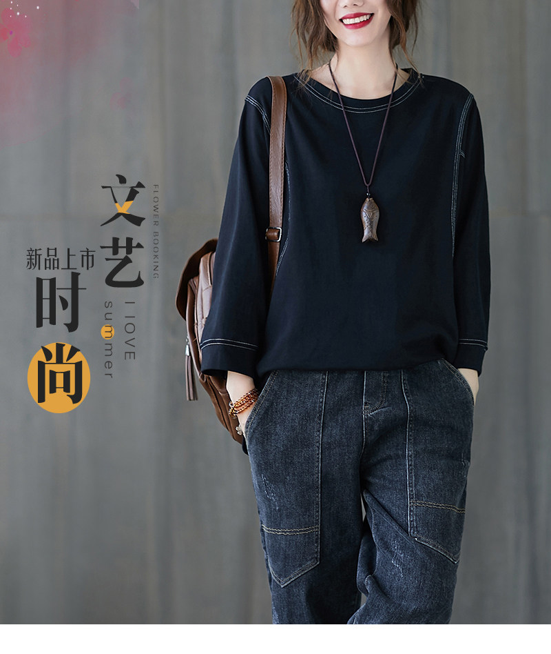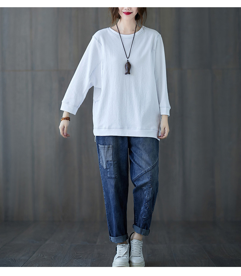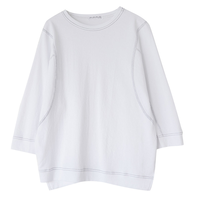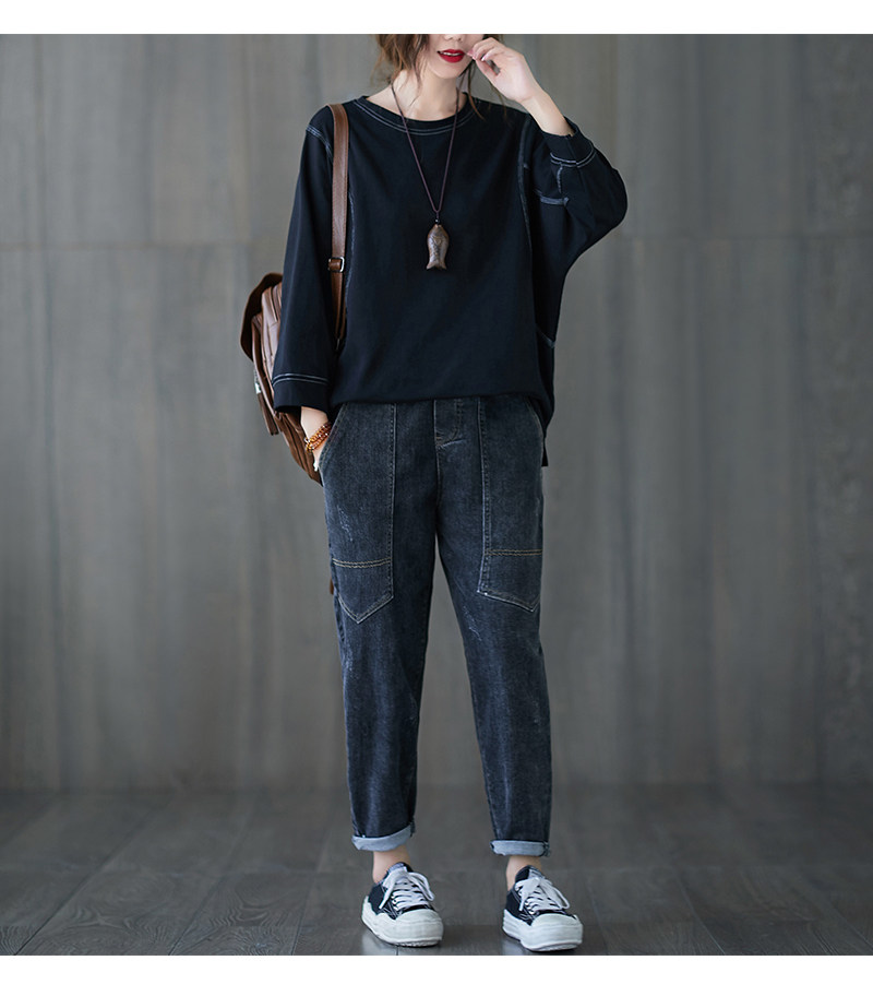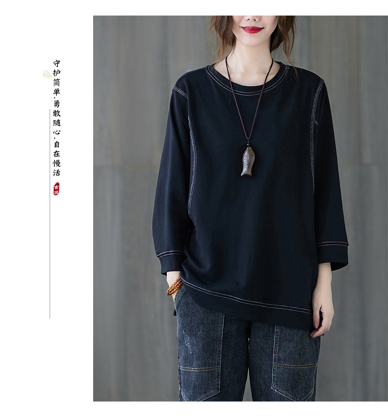 Демисезонный лонгслив с круглым воротником, футболка, большой размер, подходит для полных девушек, в западном стиле, оверсайз