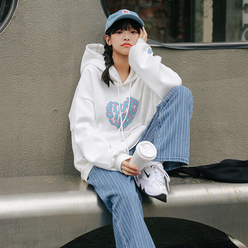 Демисезонная толстовка с капюшоном, белый бархатный свежий лонгслив