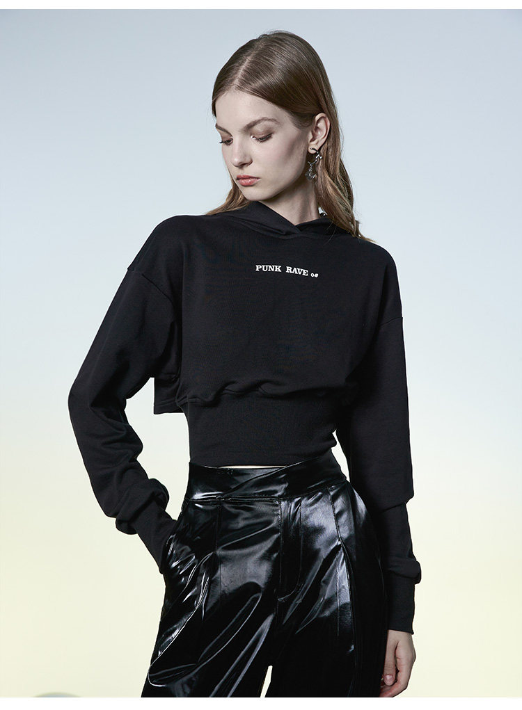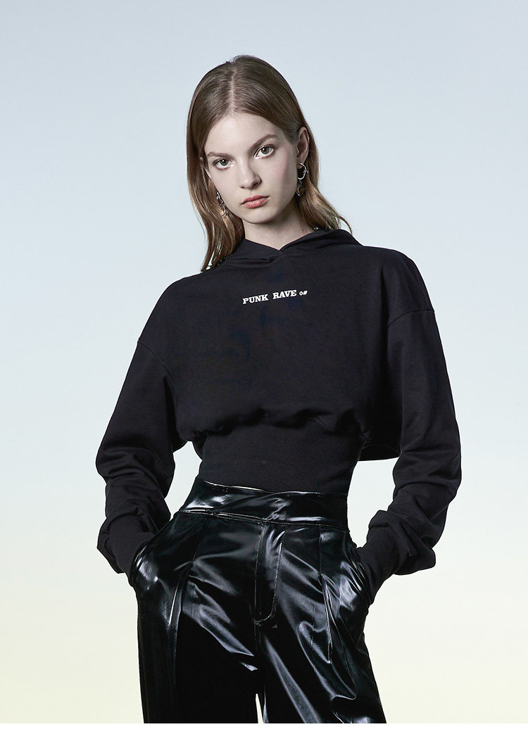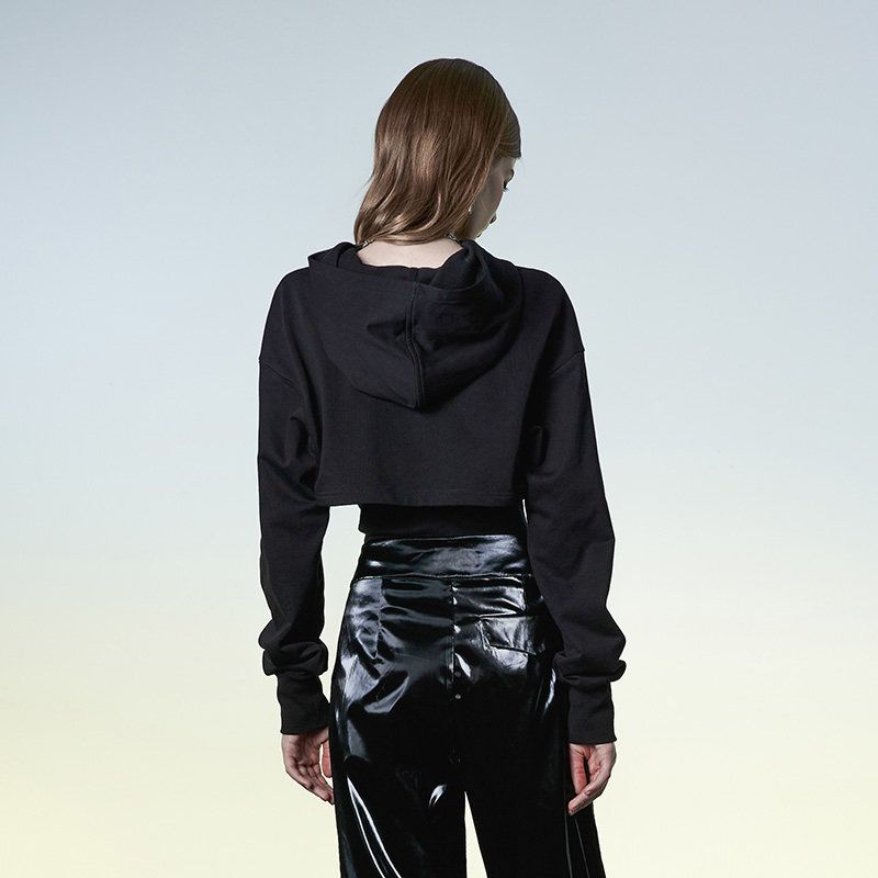 Черный дизайнерский демисезонный короткий корсет, толстовка, тренд сезона