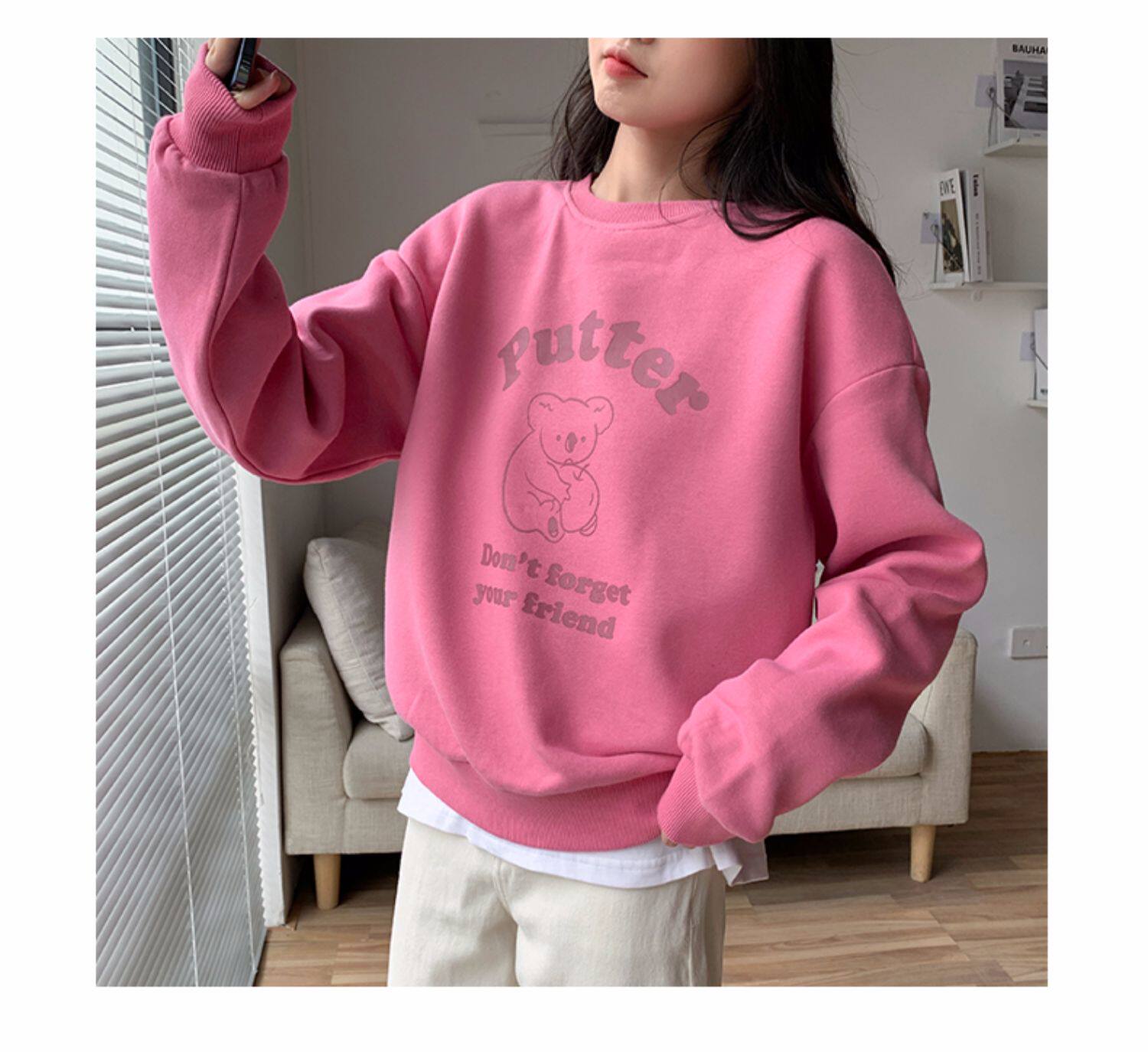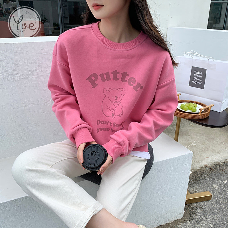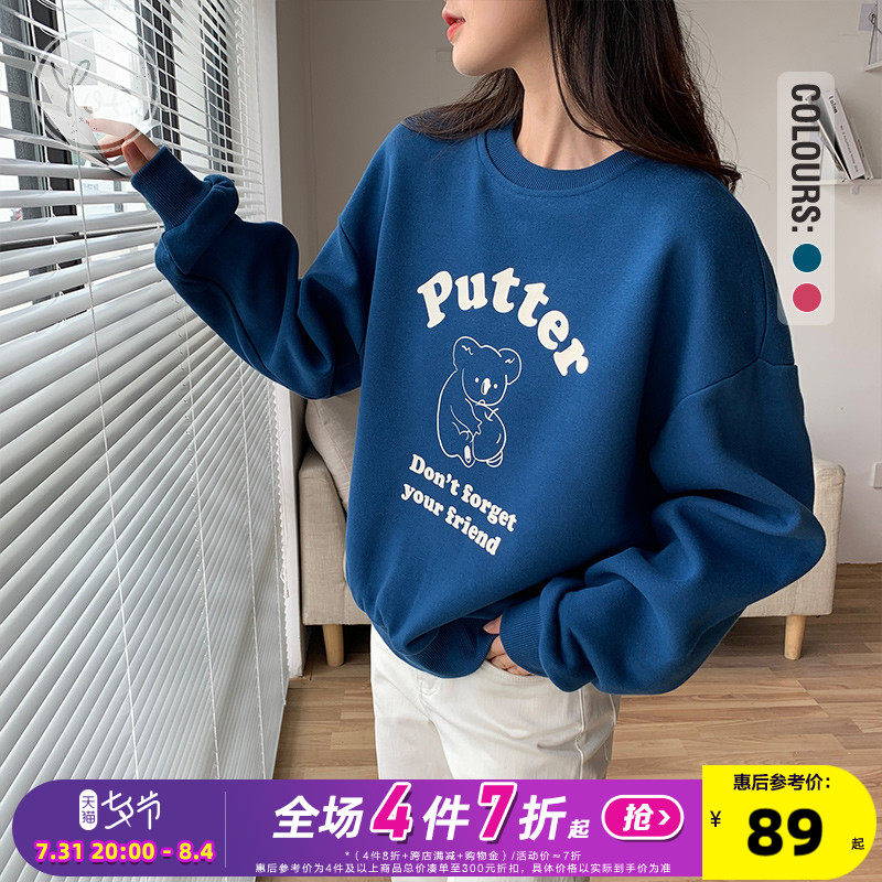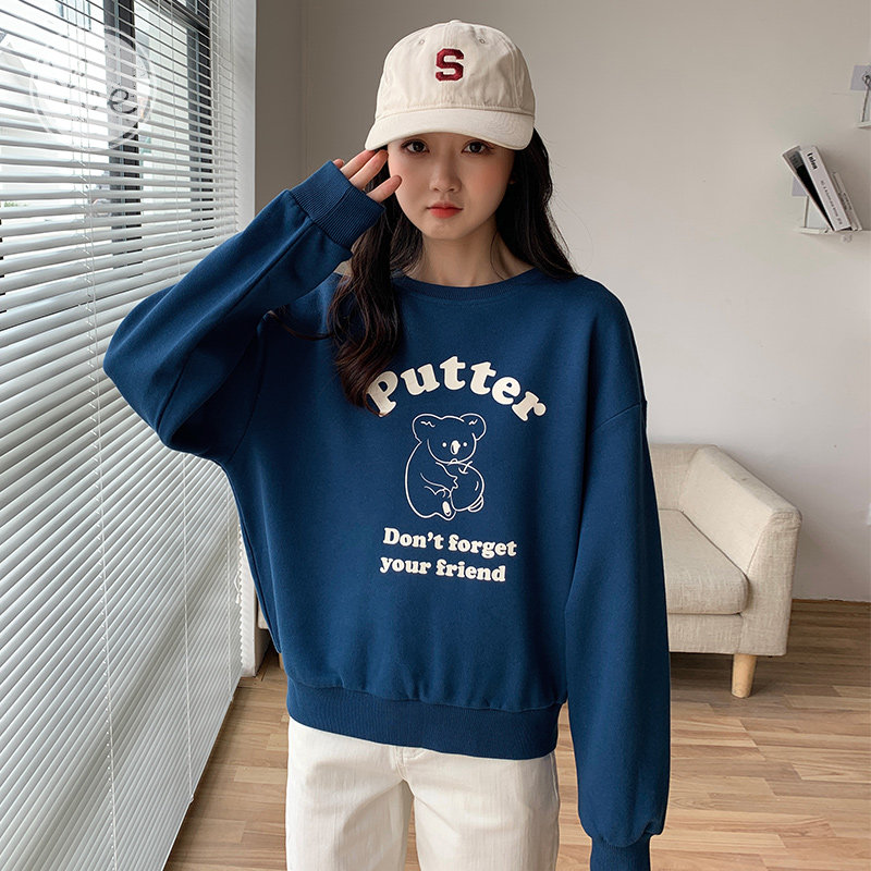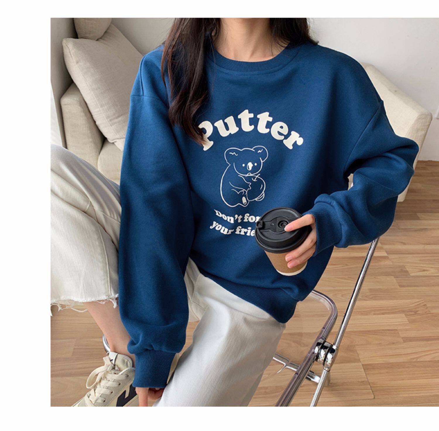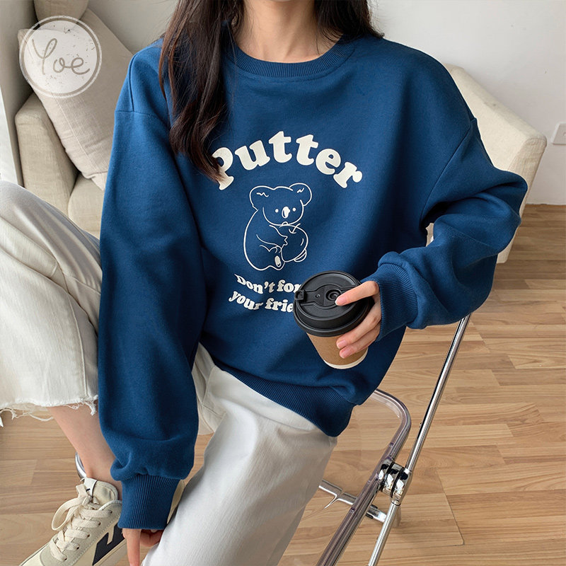 Осенняя синяя мультяшная японская толстовка с круглым воротником, оверсайз, в корейском стиле