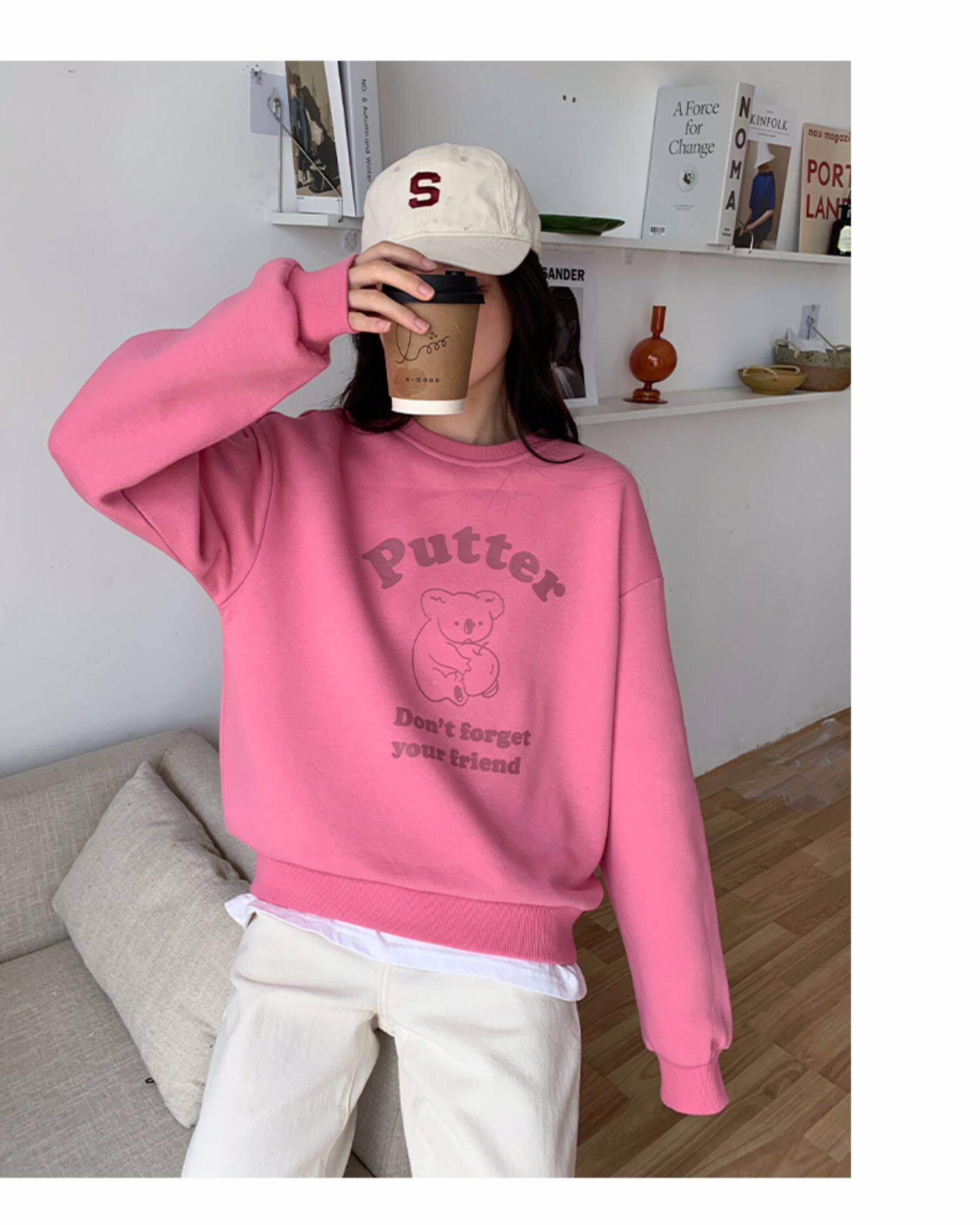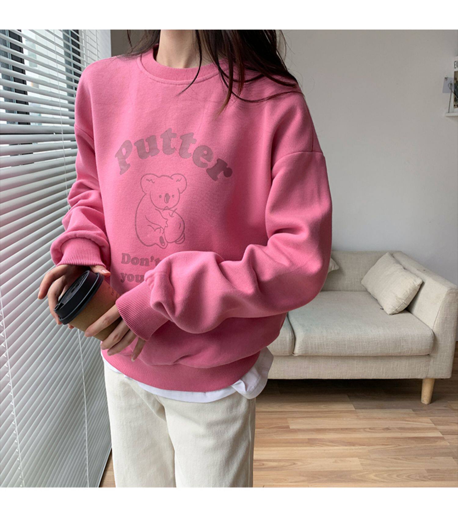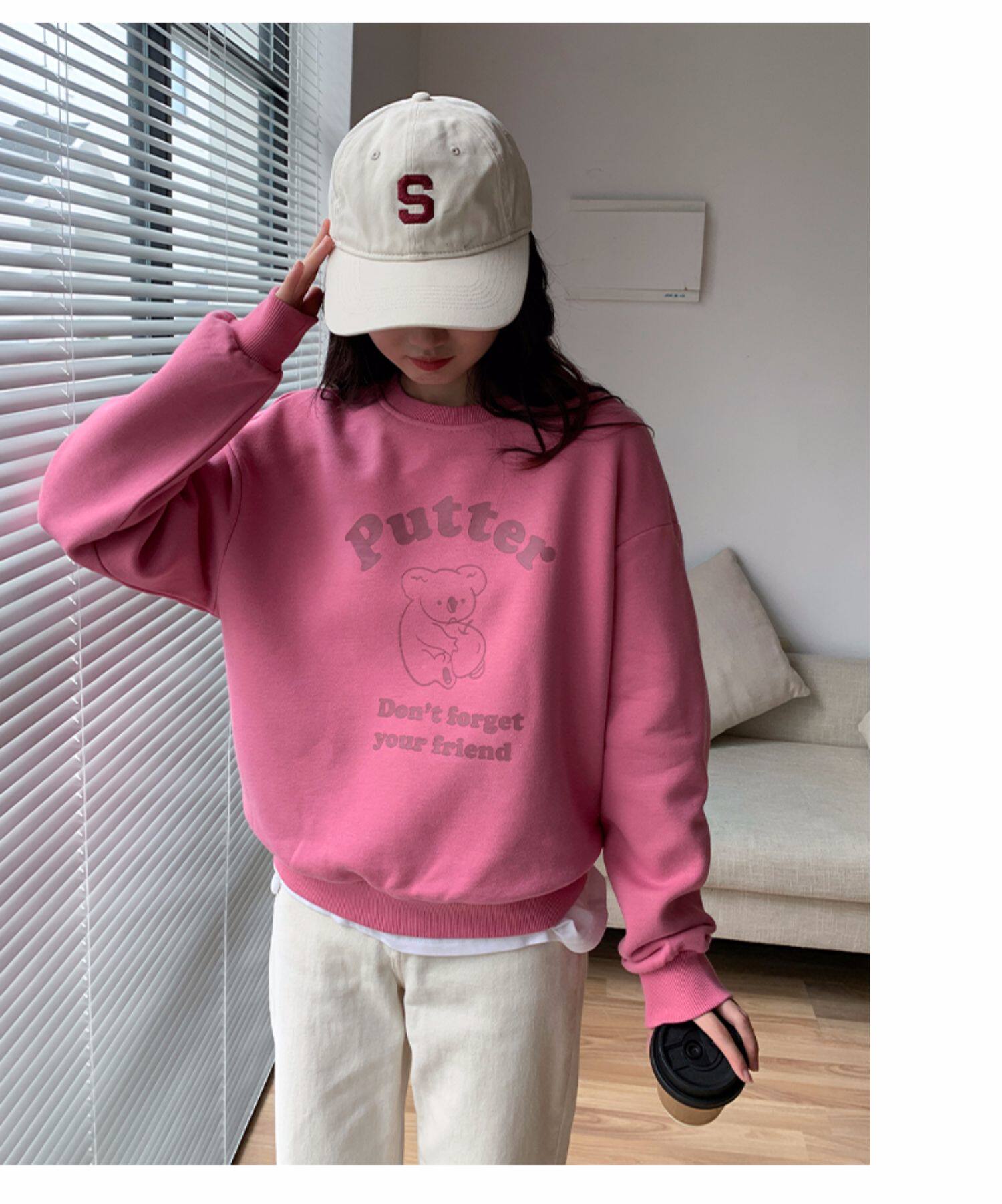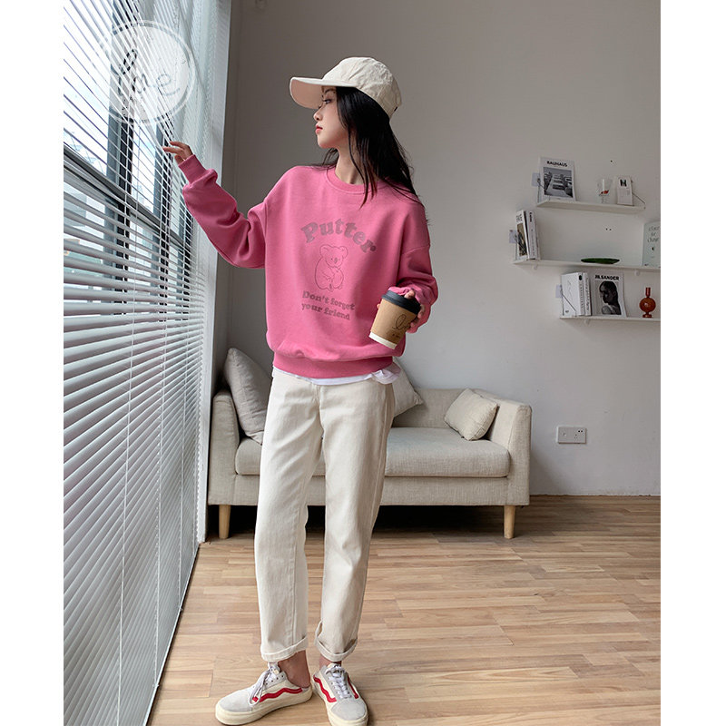 Осенняя синяя мультяшная японская толстовка с круглым воротником, оверсайз, в корейском стиле