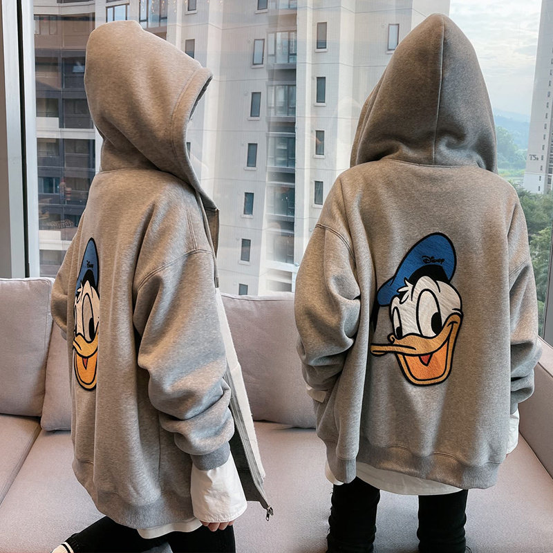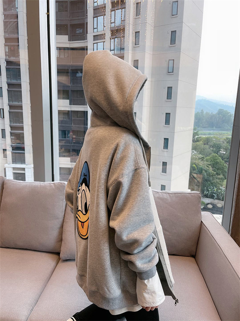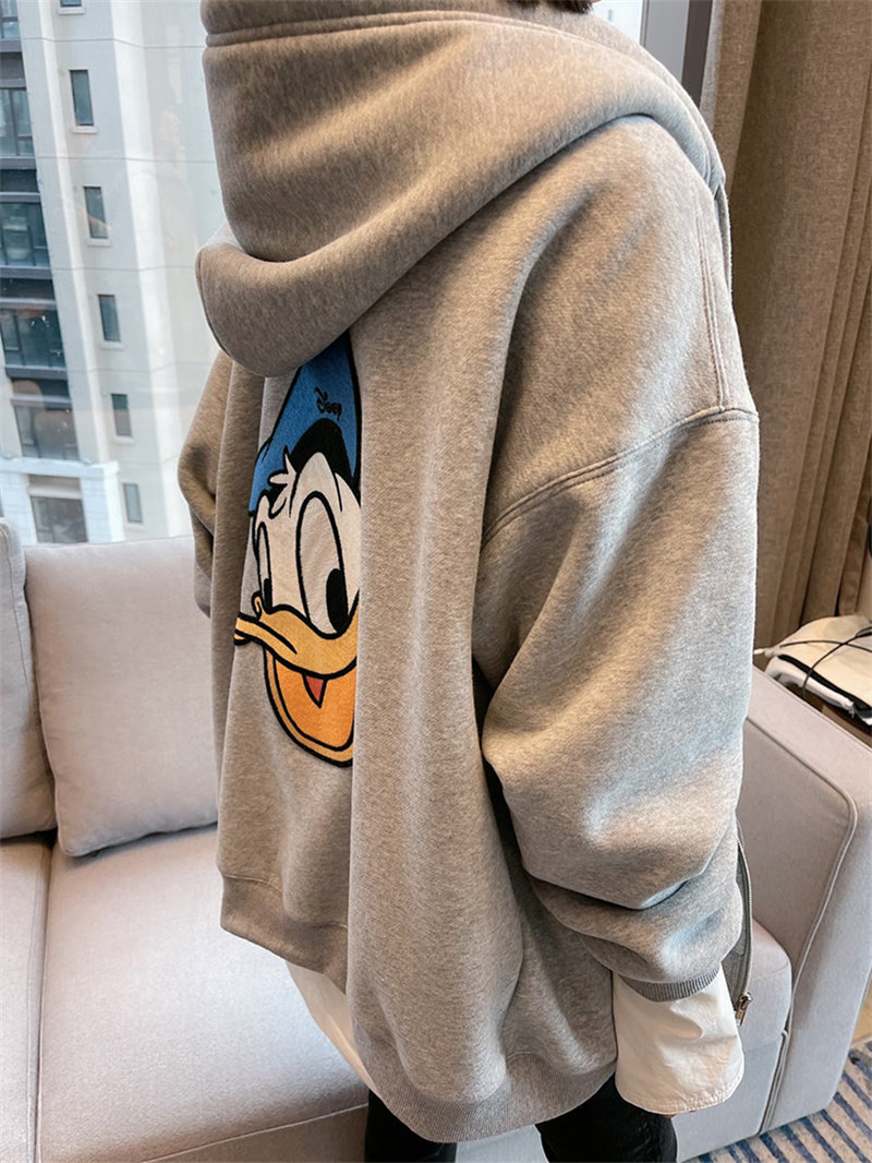 Демисезонная мультяшная толстовка с капюшоном, куртка, в корейском стиле, Дональд Дак, оверсайз, большой размер