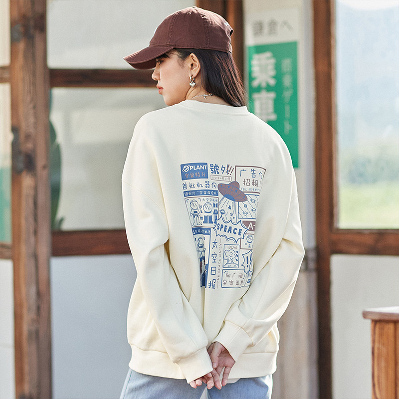 Японская модная толстовка с круглым воротником, коллекция 2023, свободный крой