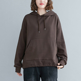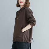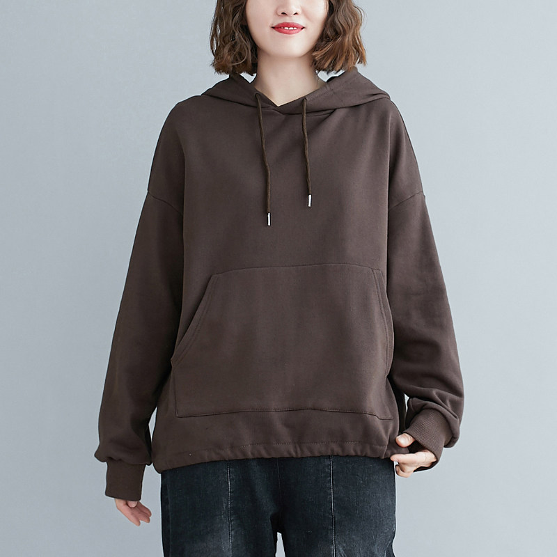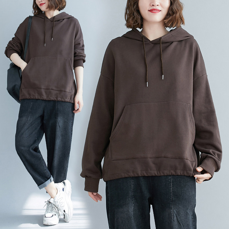 Осенний однотонный лонгслив с капюшоном, толстовка, большой размер, в корейском стиле, в западном стиле