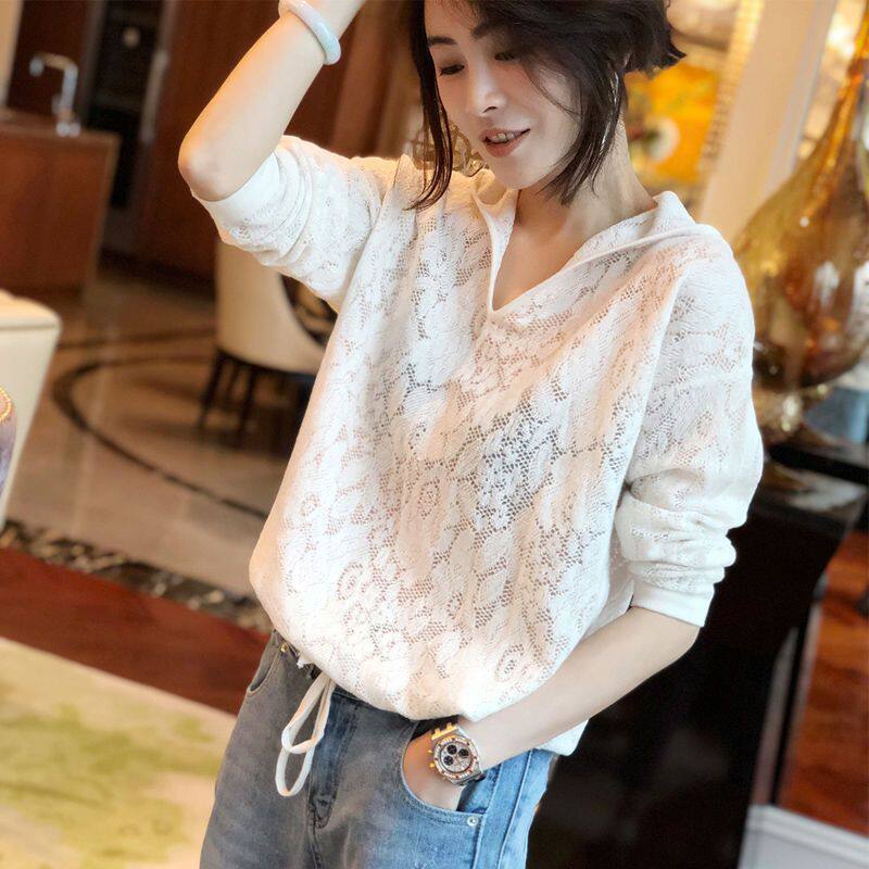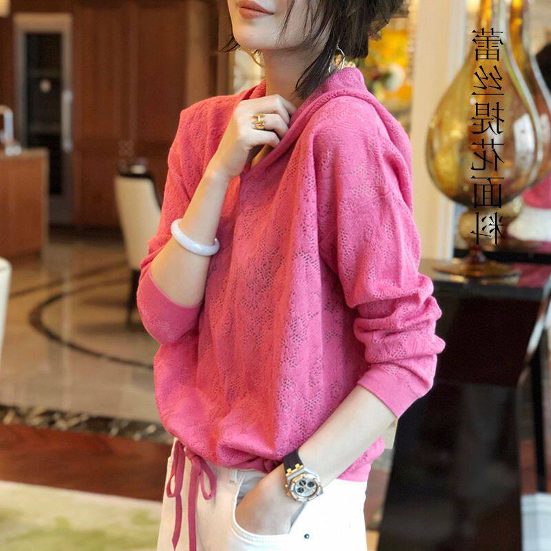 Летняя кружевная одежда для защиты от солнца с капюшоном, красная толстовка, в корейском стиле, в западном стиле