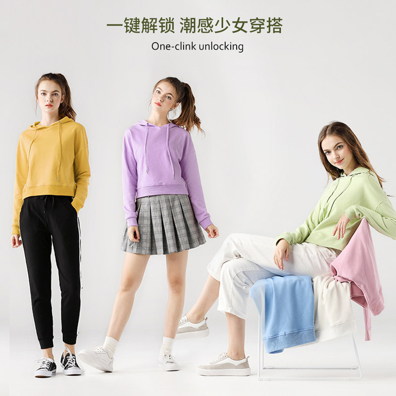 Весенняя осенняя толстовка с капюшоном, короткий черный лонгслив, 2023 года, высокая талия, подходит для подростков