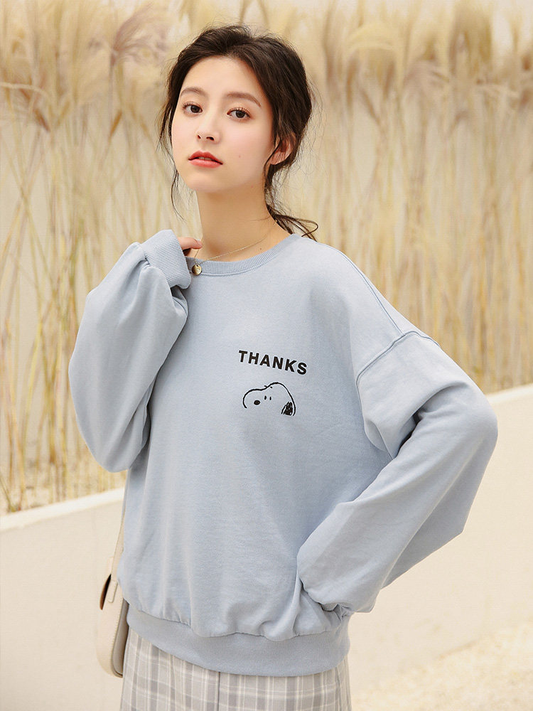Осенний бархатный мультяшный синий лонгслив для отдыха для школьников и студентов, оверсайз