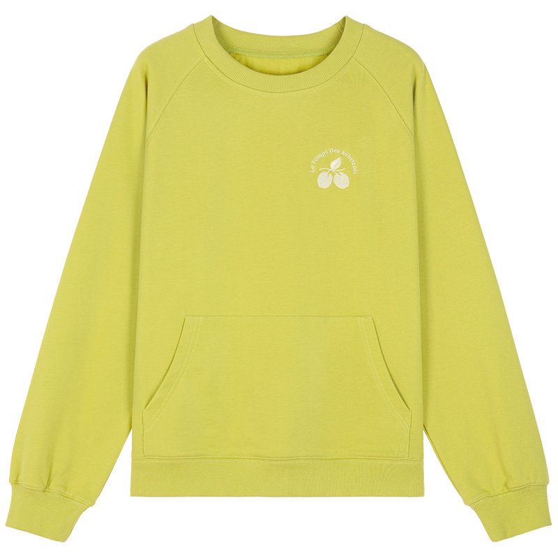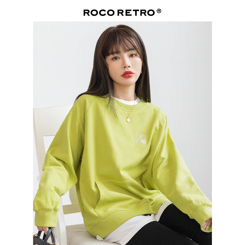 Осенняя ретро флуоресцентная зеленая толстовка с круглым воротником, с вышивкой