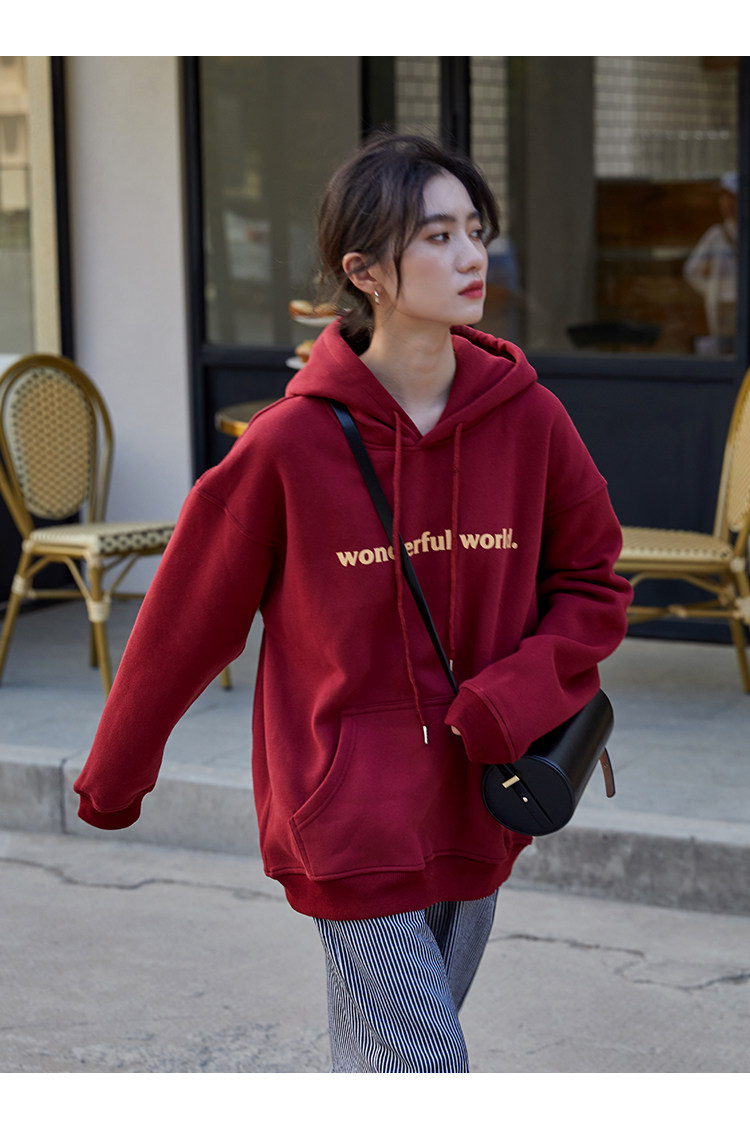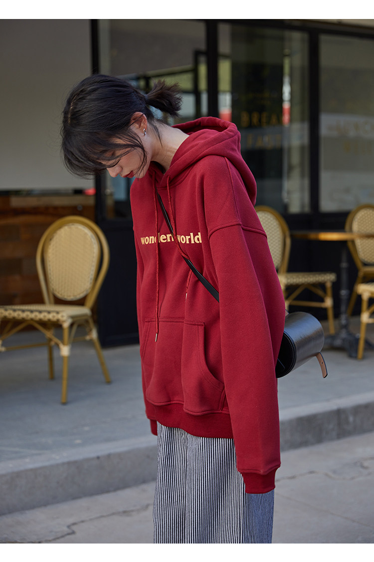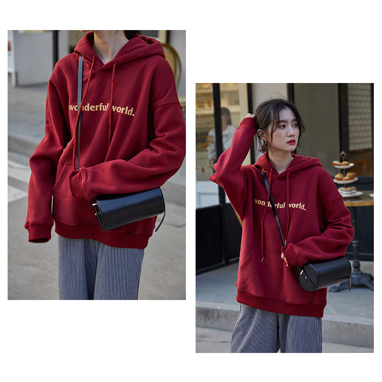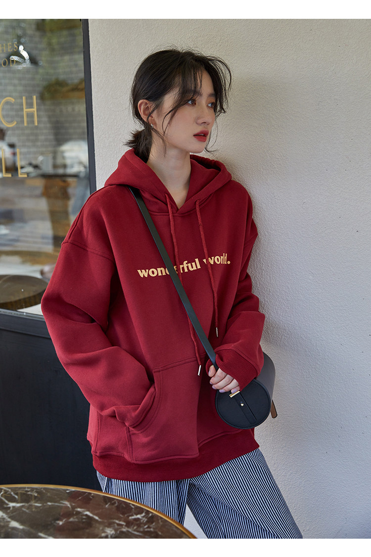 Демисезонная толстовка, лонгслив с капюшоном, красная дизайнерская бархатная куртка, свободный крой, тренд сезона
