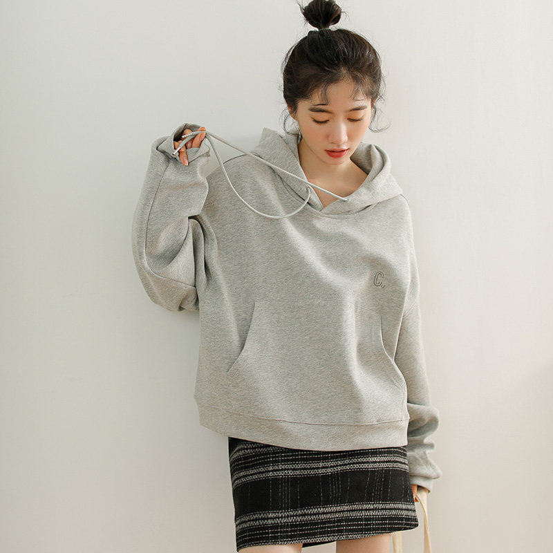 Демисезонная толстовка с капюшоном, куртка, лонгслив, бархатные нарукавники, с вышивкой, свободный крой