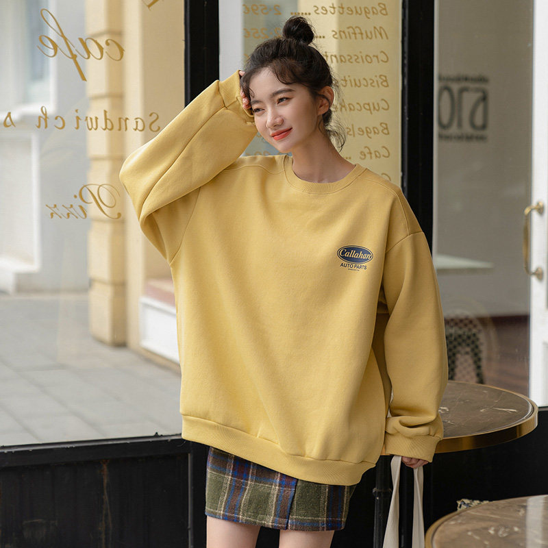Толстовка для школьников и студентов с круглым воротником, лонгслив, свежая бархатная куртка, оверсайз