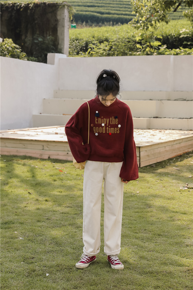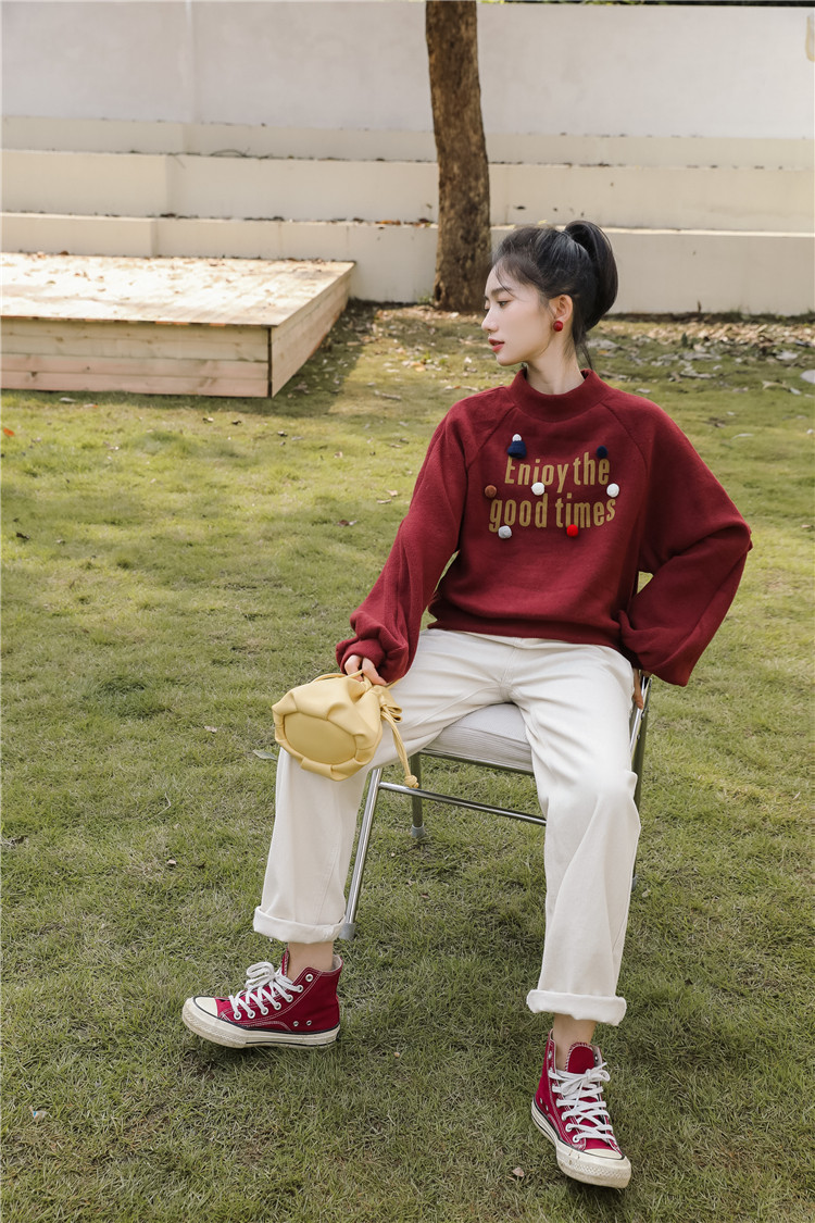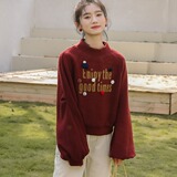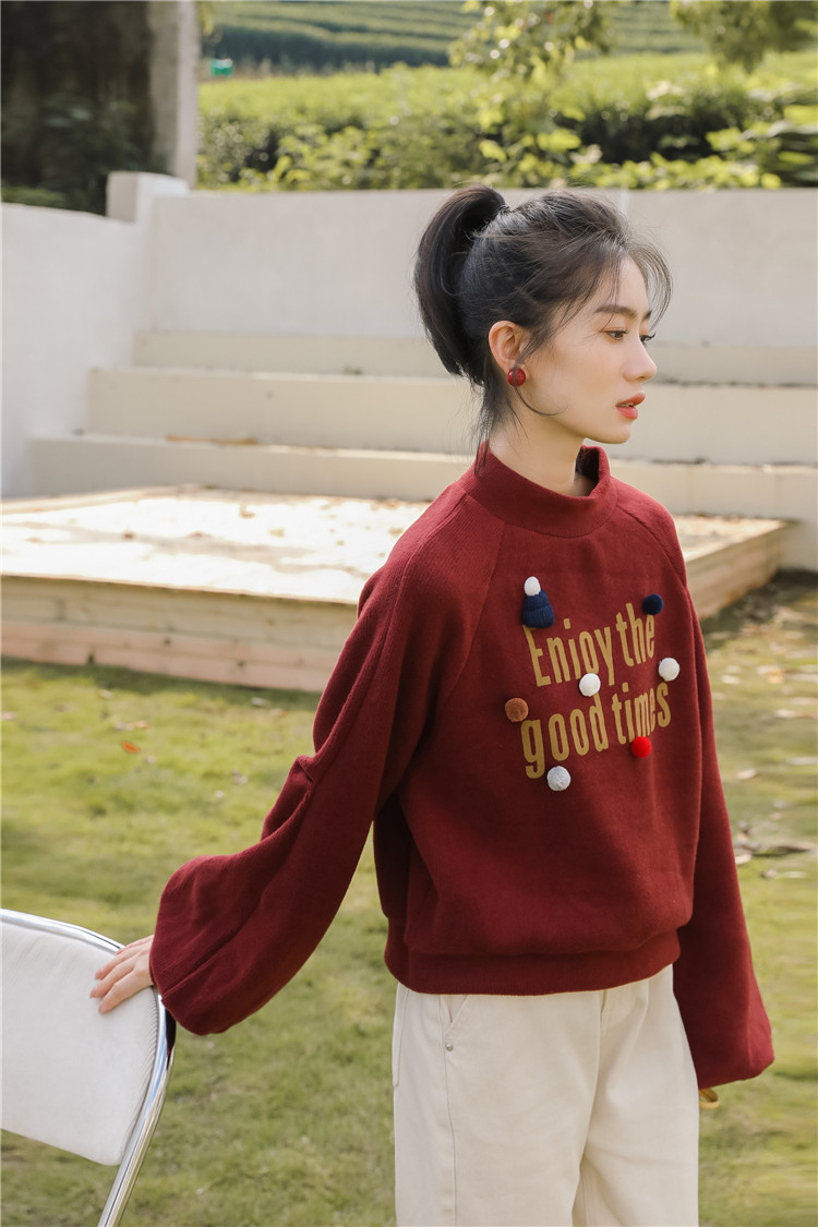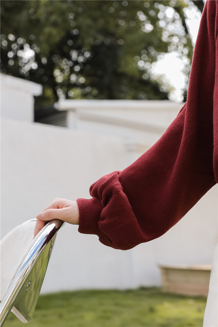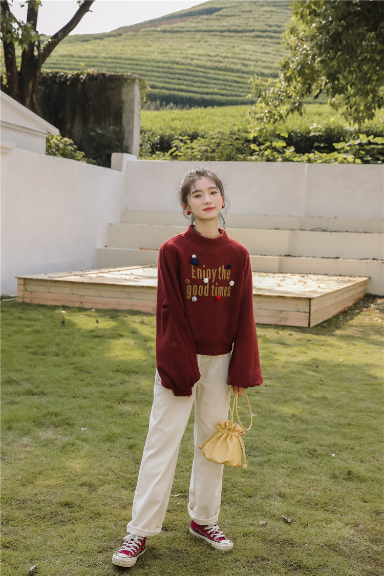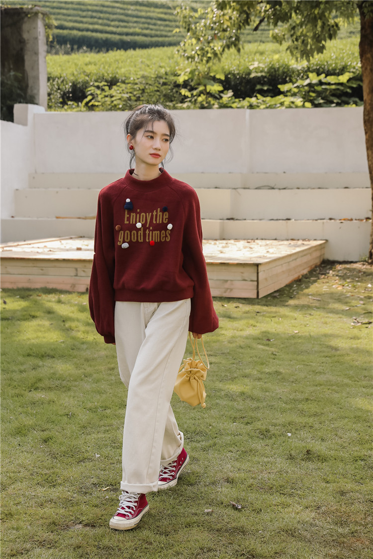 Демисезонная утепленная толстовка, бордовая футболка, куртка, бархатный лонгслив, высокий воротник, рукава фонарики