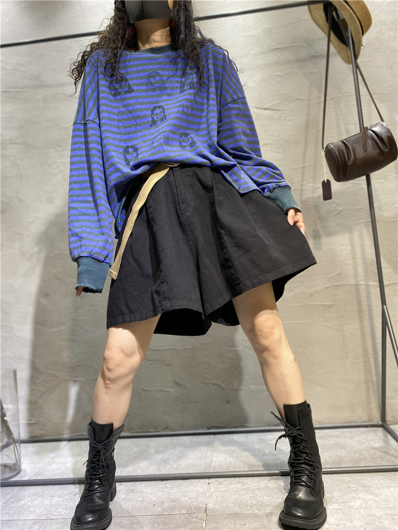 Синяя классическая толстовка с круглым воротником, осенняя куртка, европейский стиль, 2021 года, большой размер