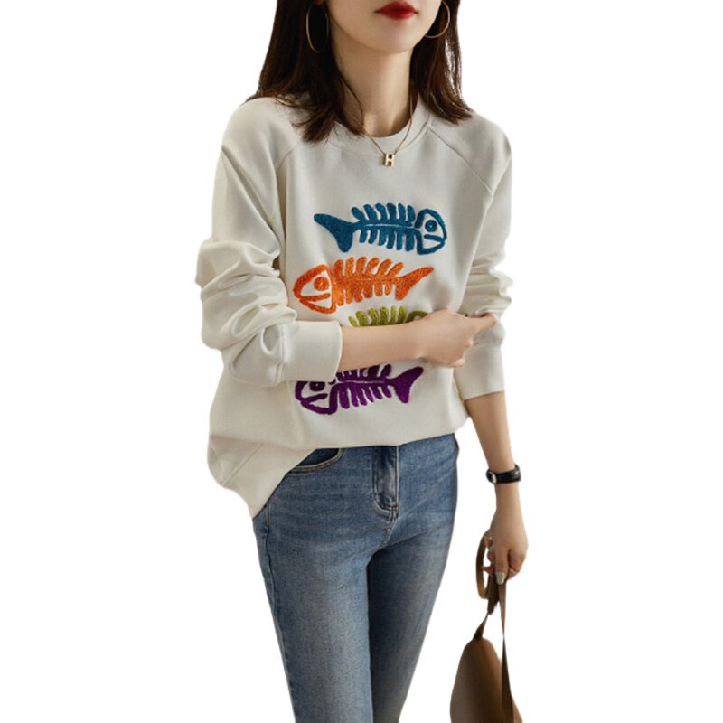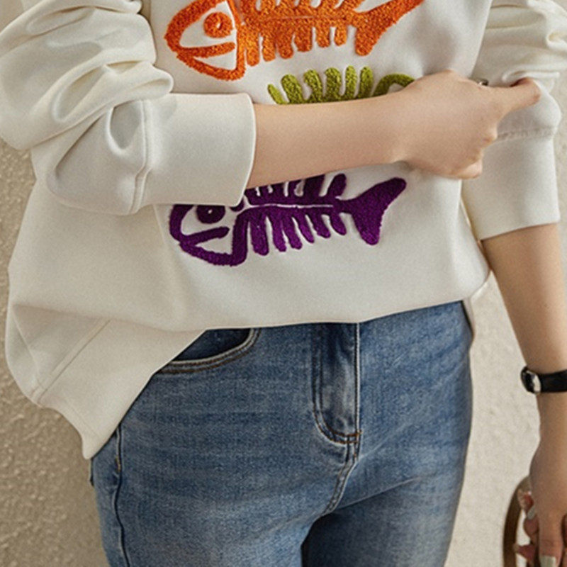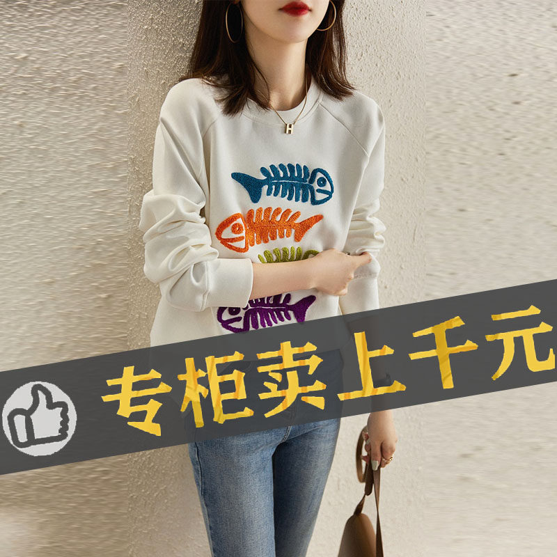 (Трансграничная торговля), бархатная толстовка с круглым воротником, в западном стиле, с вышивкой, оверсайз