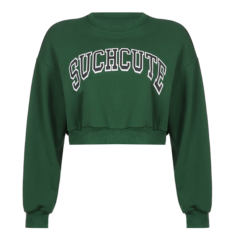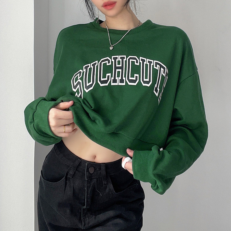 AOMR американский ретро темно-зеленый белый пуловер с буквенным принтом для женщин свободный и универсальный уличный повседневный короткий топ