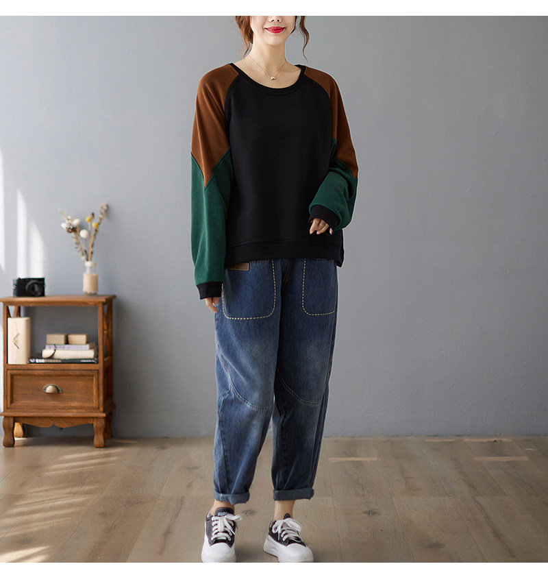 Демисезонный свитшот с круглым воротником, базовый лонгслив, рубашка, в корейском стиле, большой размер, свободный крой