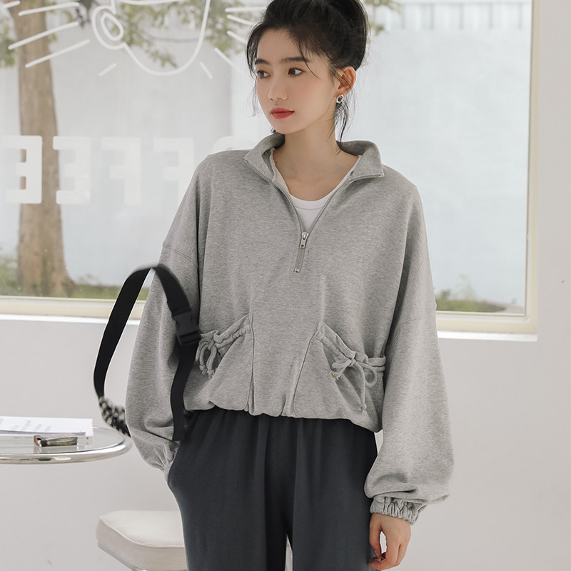 Осенний лонгслив, куртка, бархатная небольшая дизайнерская толстовка с молнией, на шнурках, тренд сезона