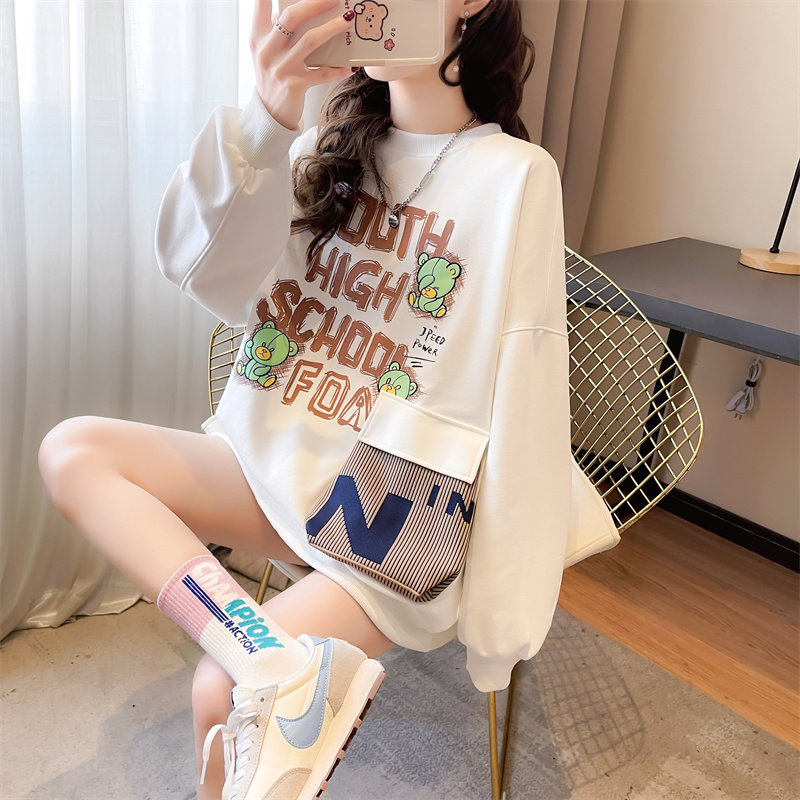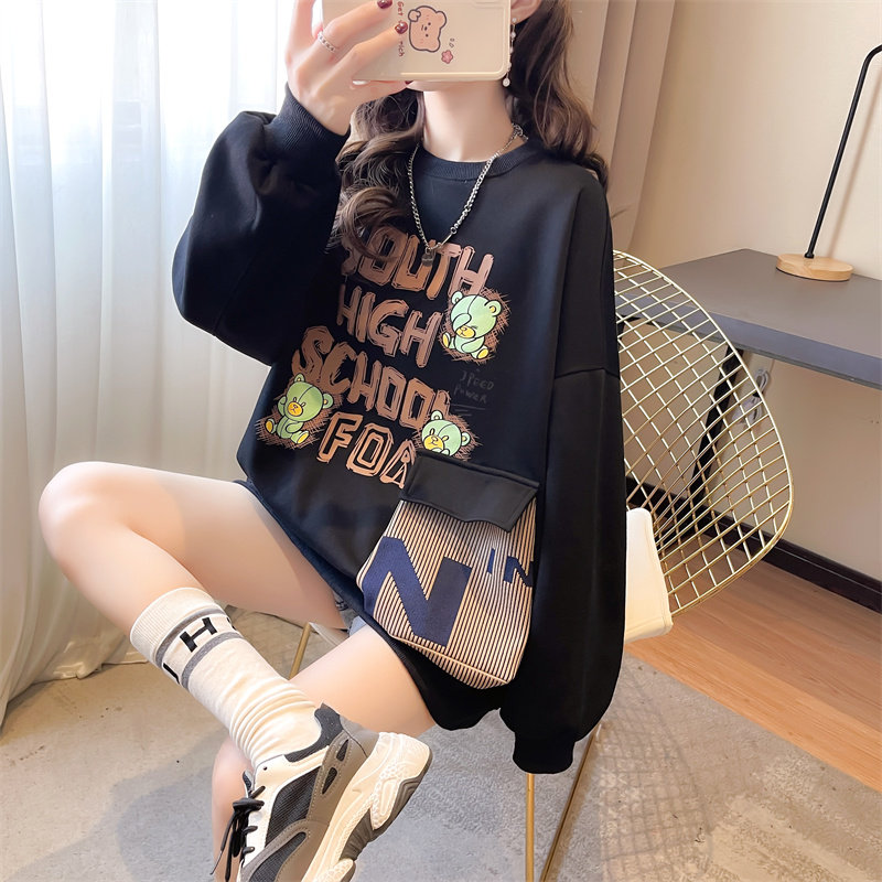 Лонгслив, осенняя утепленная толстовка для школьников и студентов, для средней школы, в корейском стиле