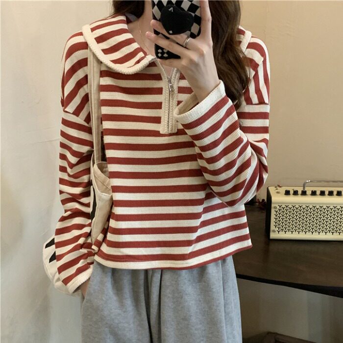 Осенняя толстовка, цепочка с молнией, лонгслив, в корейском стиле, свободный крой