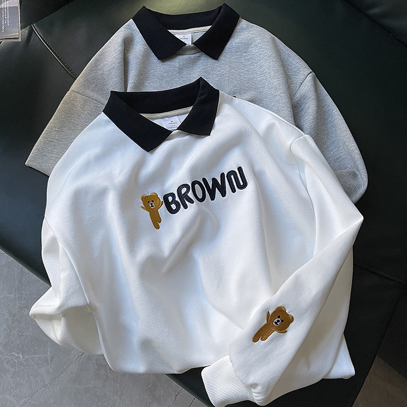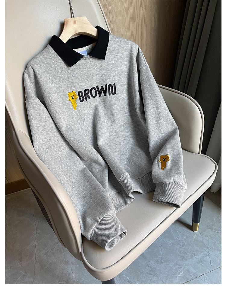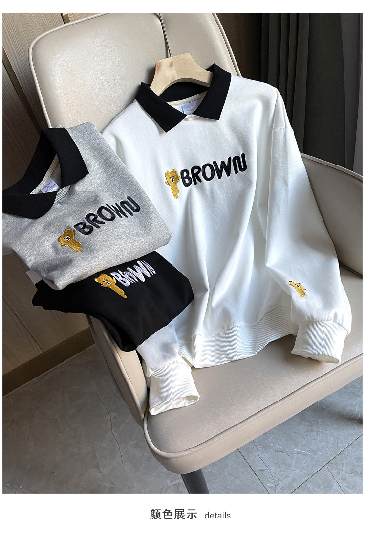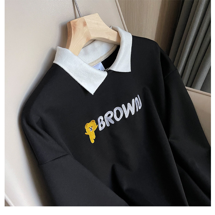 Хлопковый комплект, толстовка, осенний мультяшный лонгслив для отдыха, коллекция 2021, оверсайз, с вышивкой
