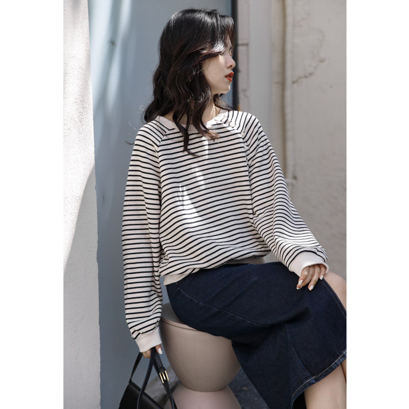 Осенняя толстовка с круглым воротником, дизайнерский бархатный лонгслив, оверсайз, свободный крой, тренд сезона