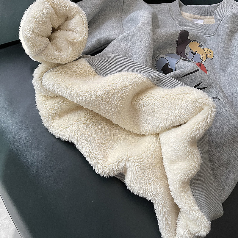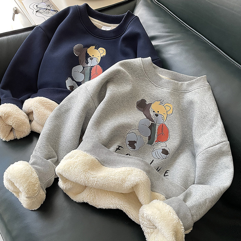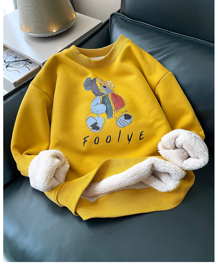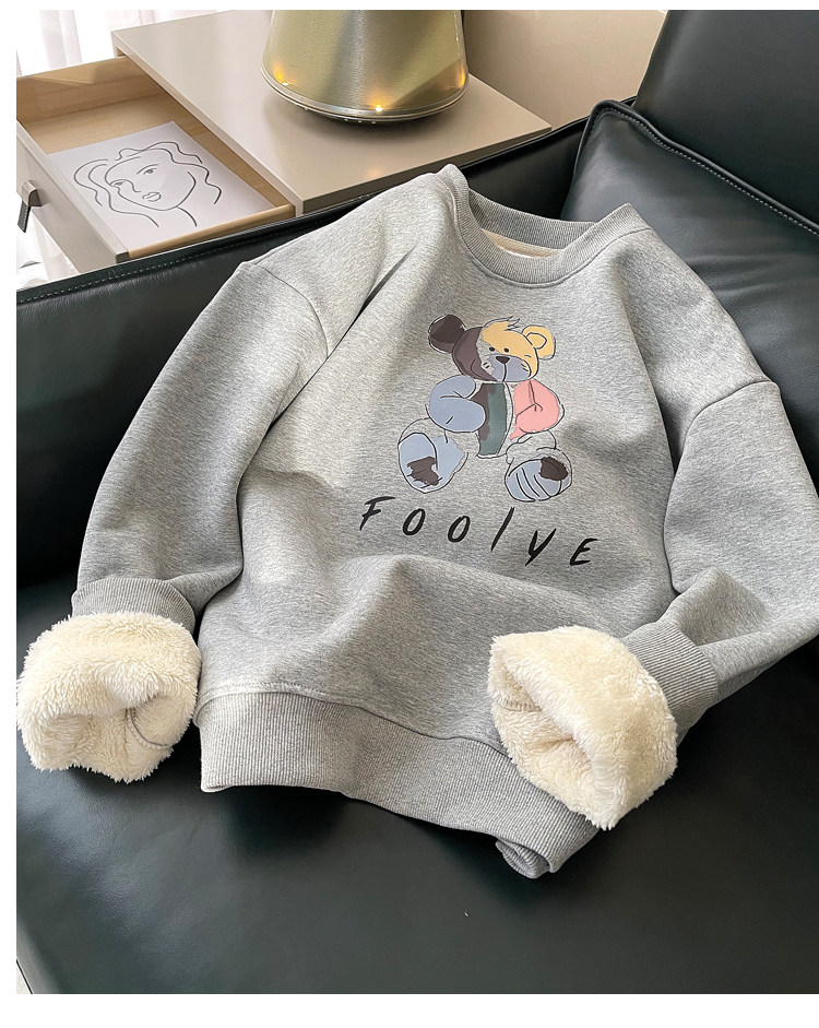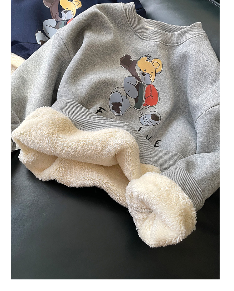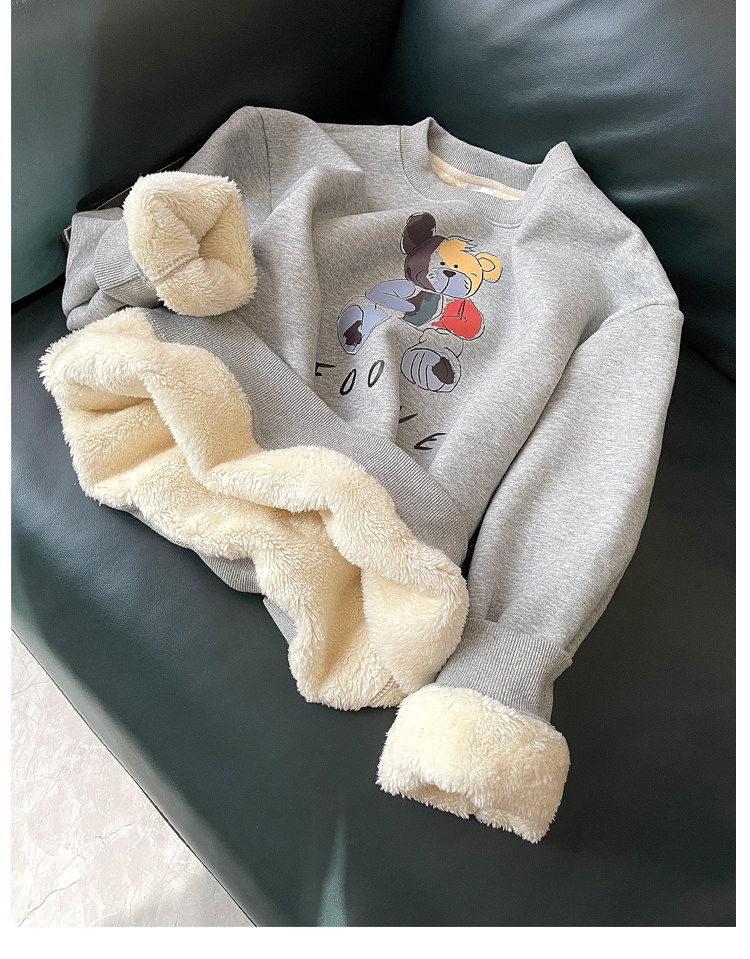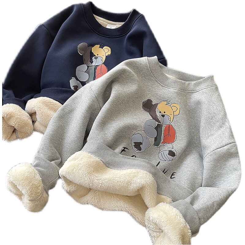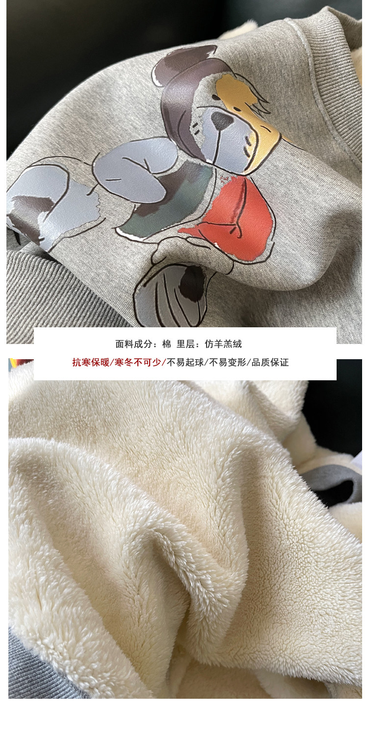 Демисезонная мультяшная флисовая бархатная удерживающая тепло толстовка с круглым воротником для школьников, коллекция 2021, увеличенная толщина, в корейском стиле