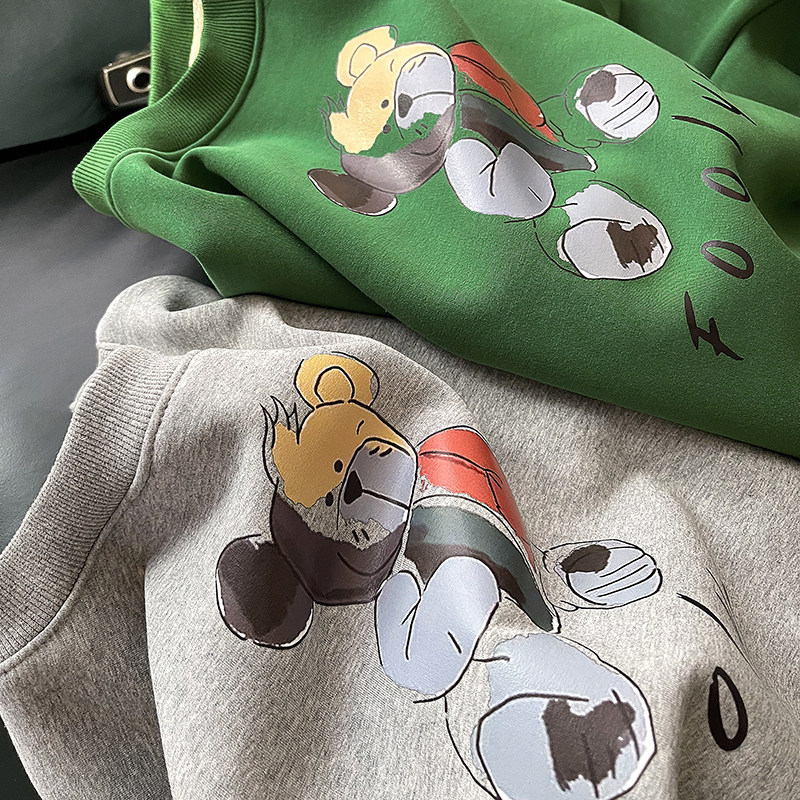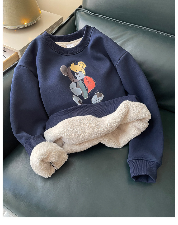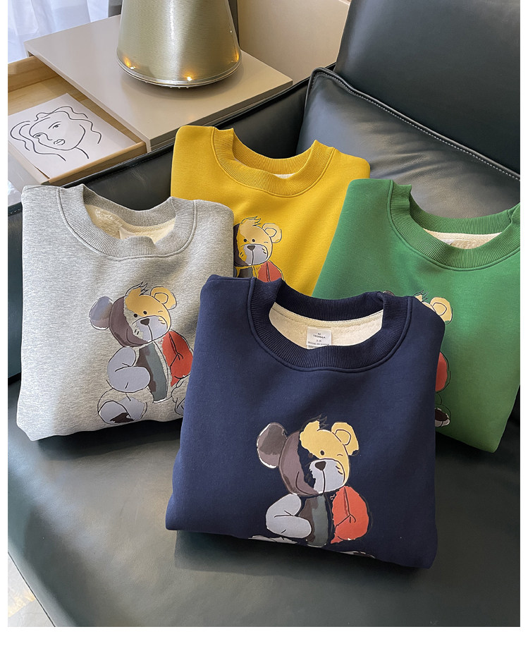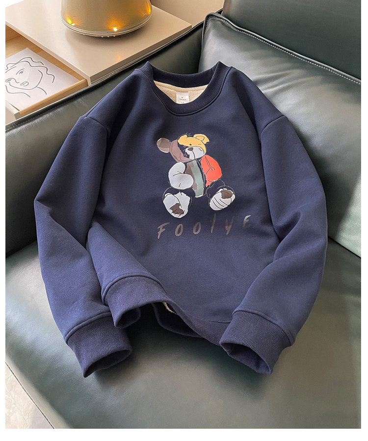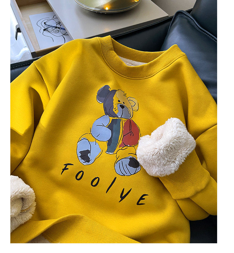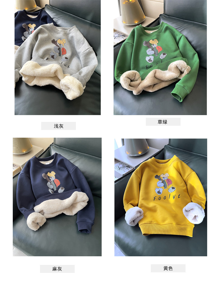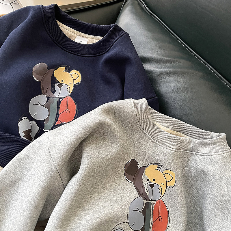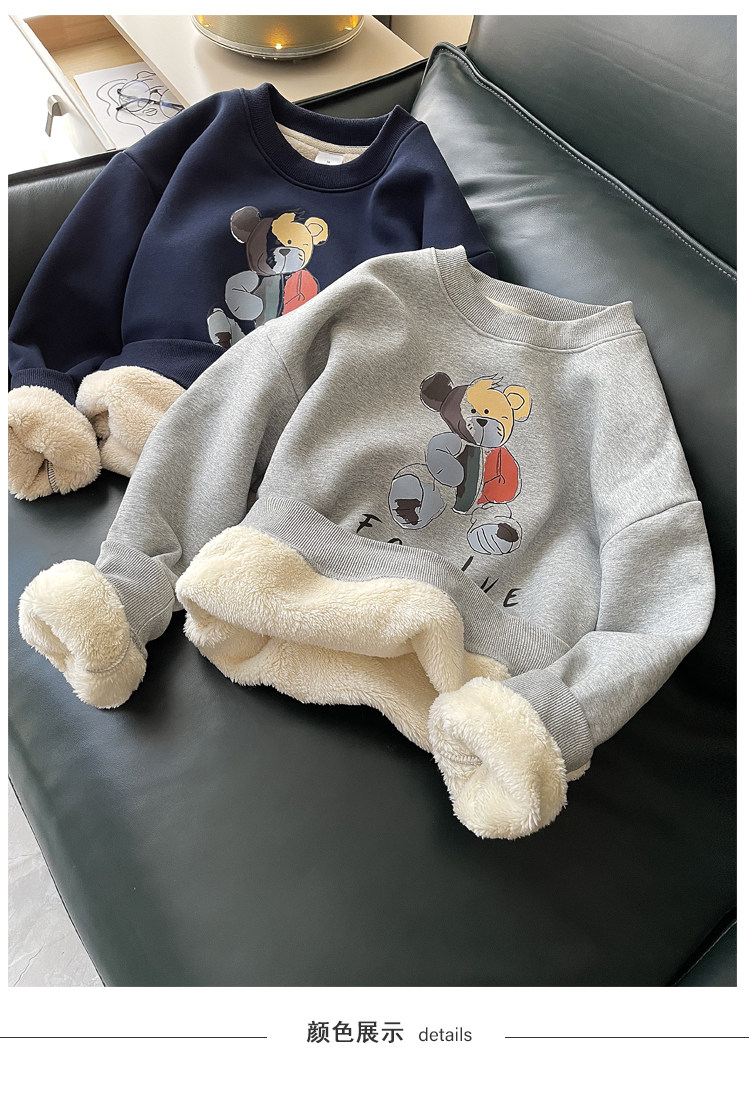 Демисезонная мультяшная флисовая бархатная удерживающая тепло толстовка с круглым воротником для школьников, коллекция 2021, увеличенная толщина, в корейском стиле