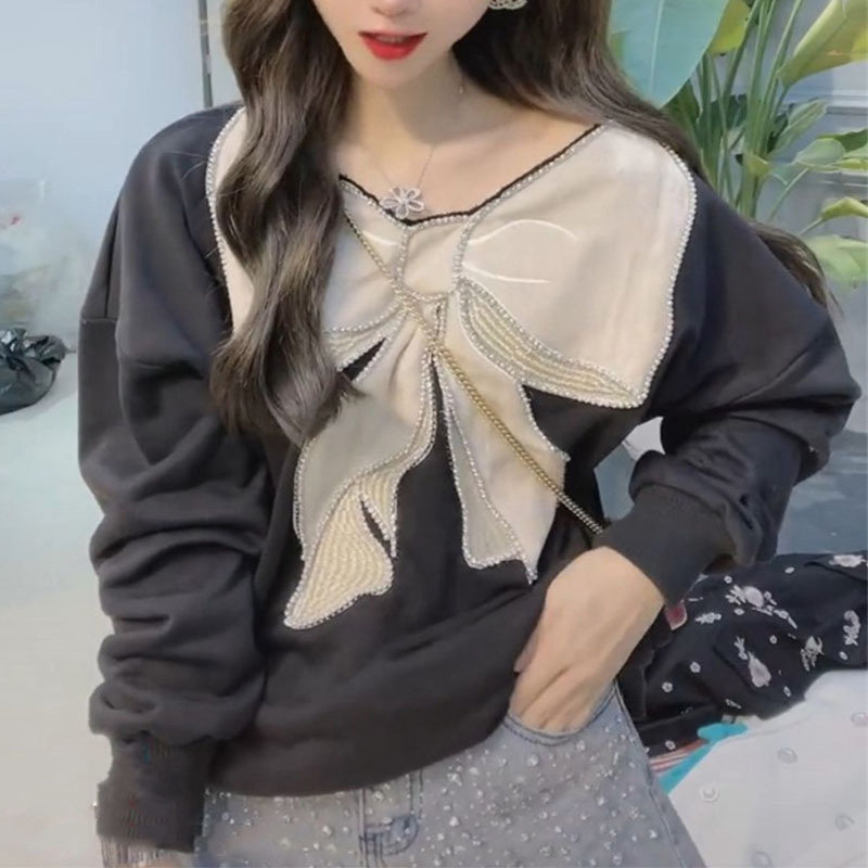 Модная осенняя толстовка с бантиком, европейский стиль, популярно в интернете, оверсайз, в корейском стиле, в западном стиле