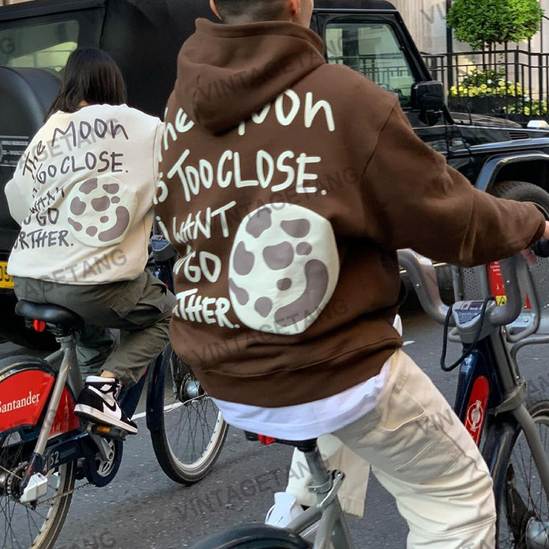 Ретро коричневая толстовка с капюшоном для отдыха, в американском стиле, для влюбленных