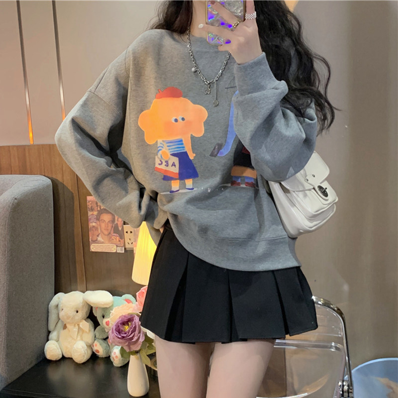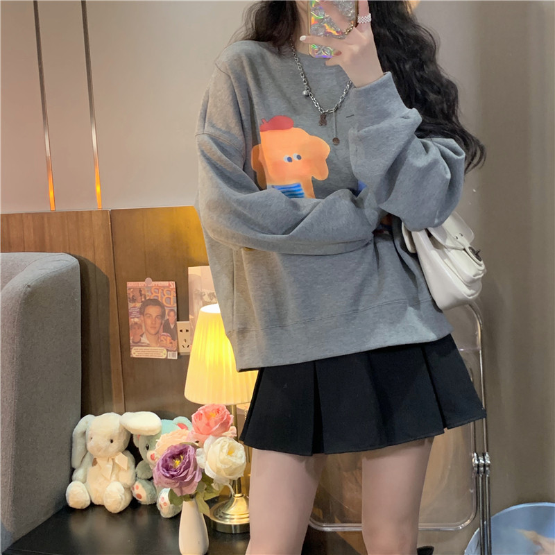 Мультяшная весенняя толстовка, лонгслив с круглым воротником, куртка, коллекция 2022, оверсайз, популярно в интернете