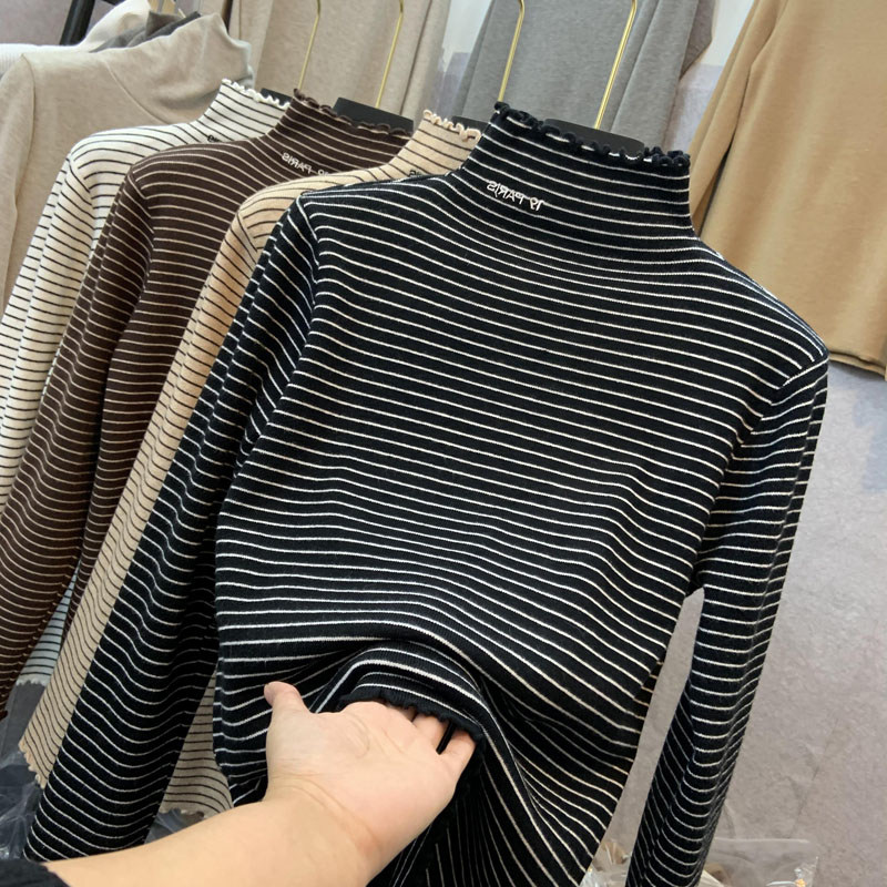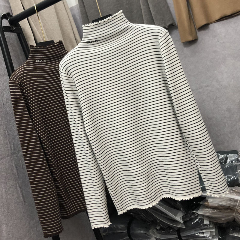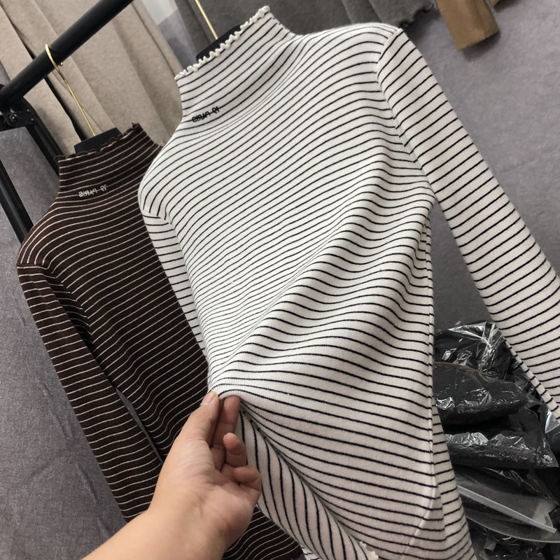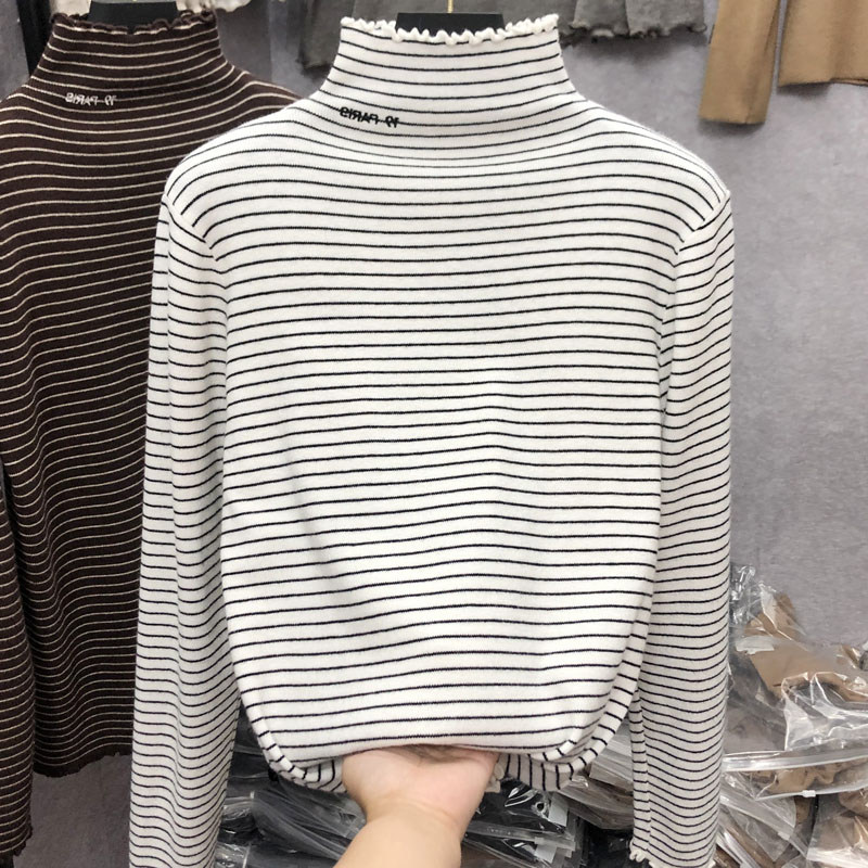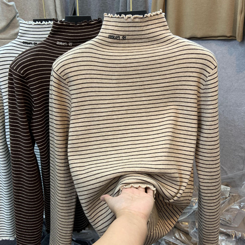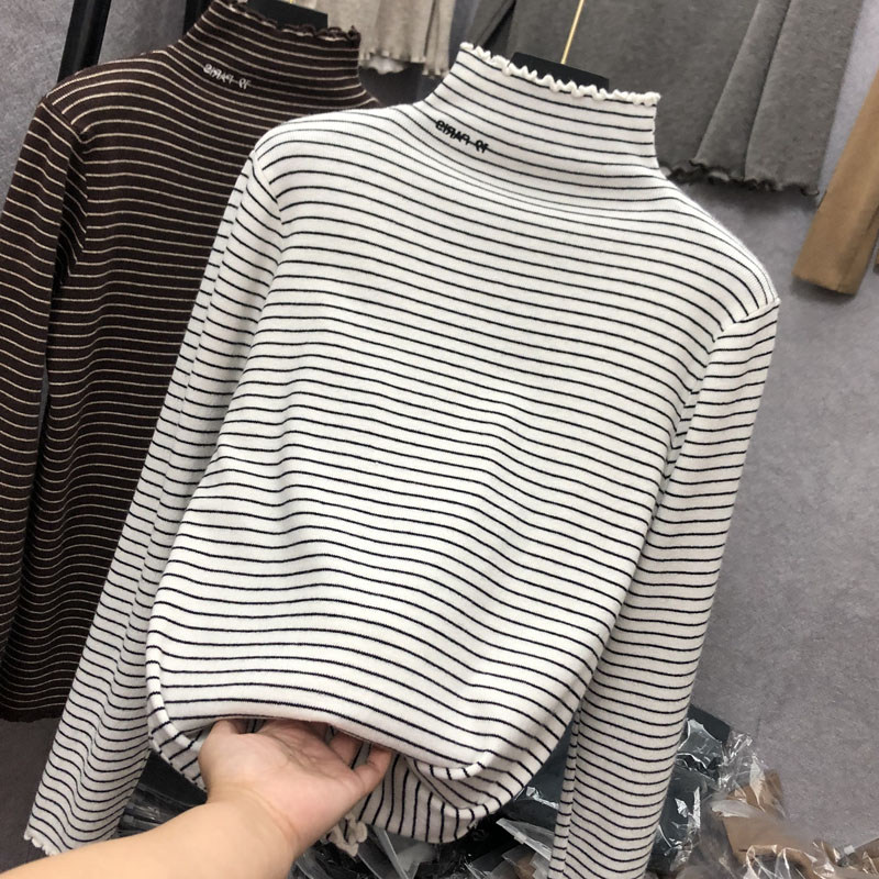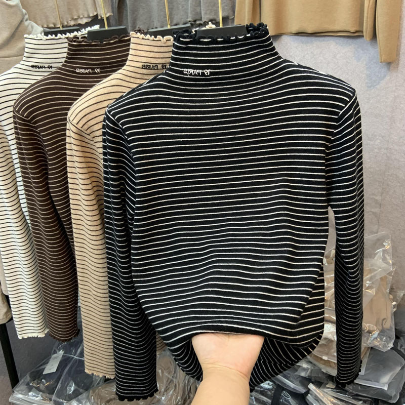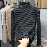 Демисезонный бархатный базовый приятный телу лонгслив, высокий воротник, в западном стиле, большой размер
