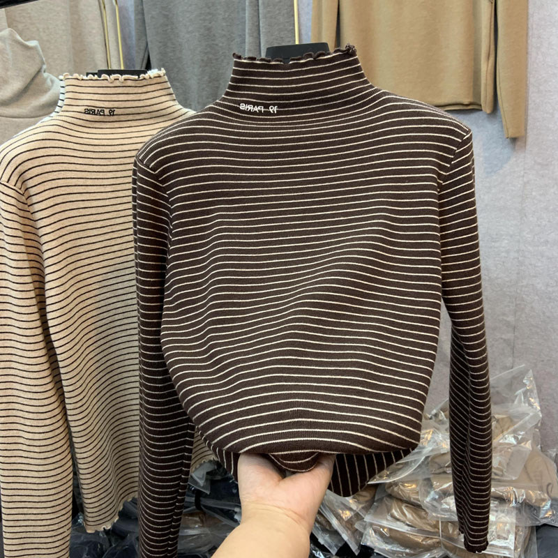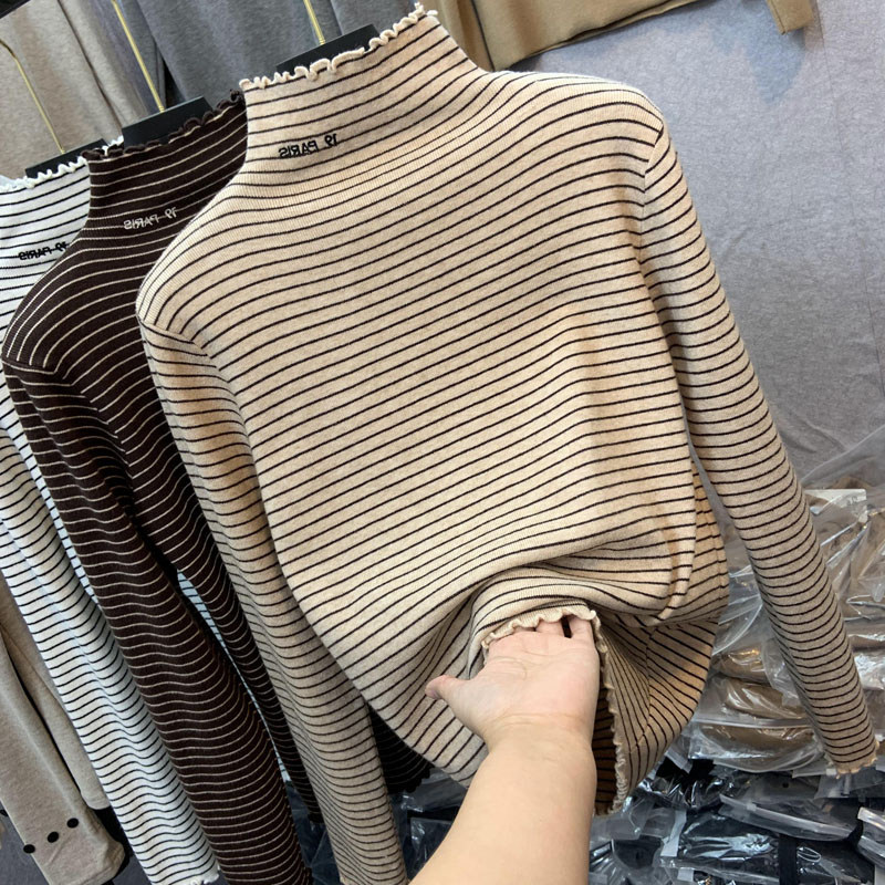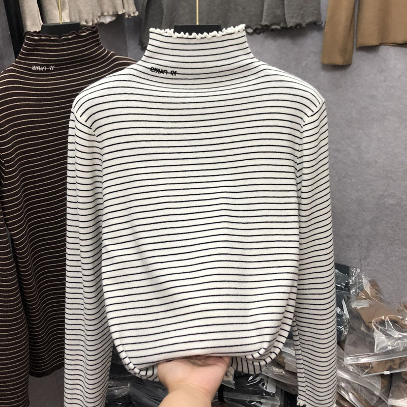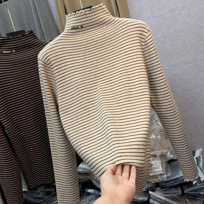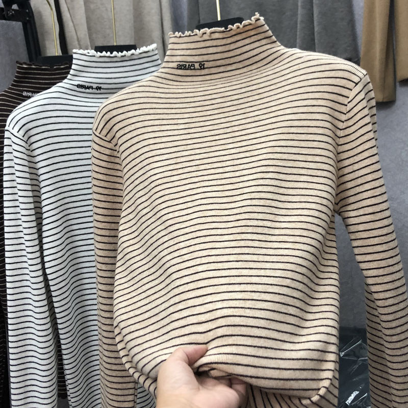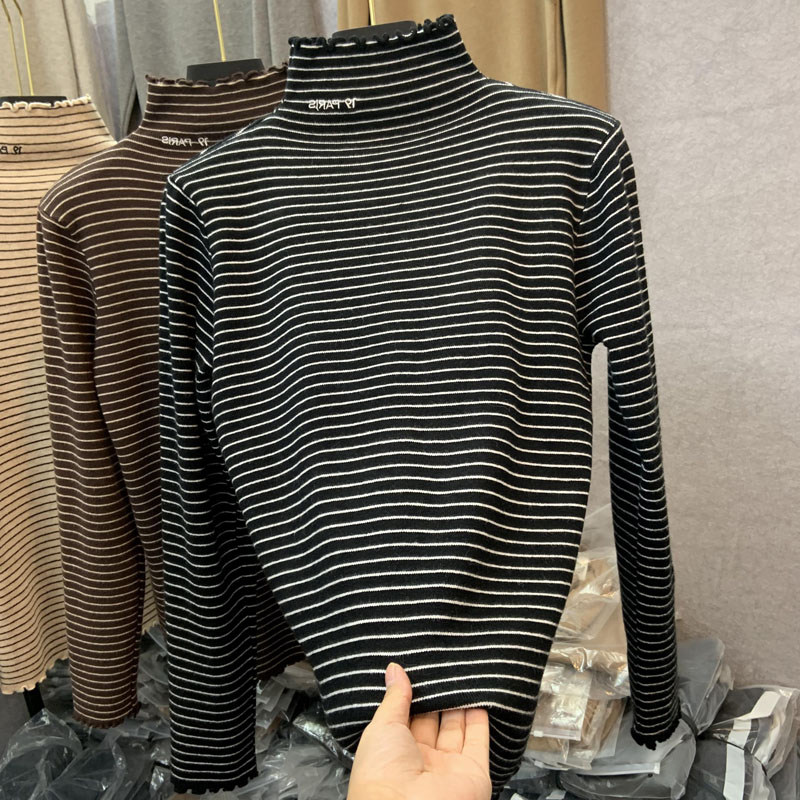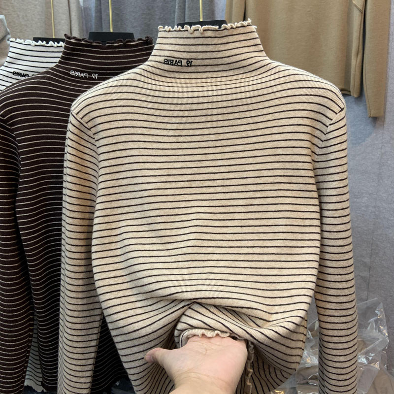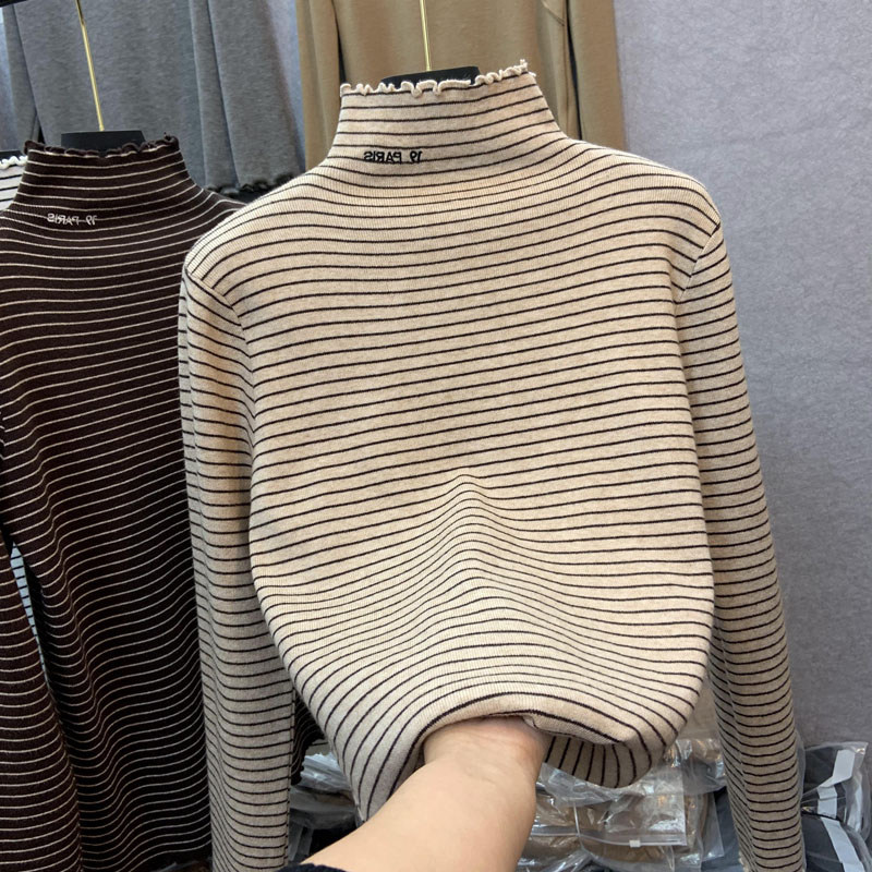 Демисезонный бархатный базовый приятный телу лонгслив, высокий воротник, в западном стиле, большой размер
