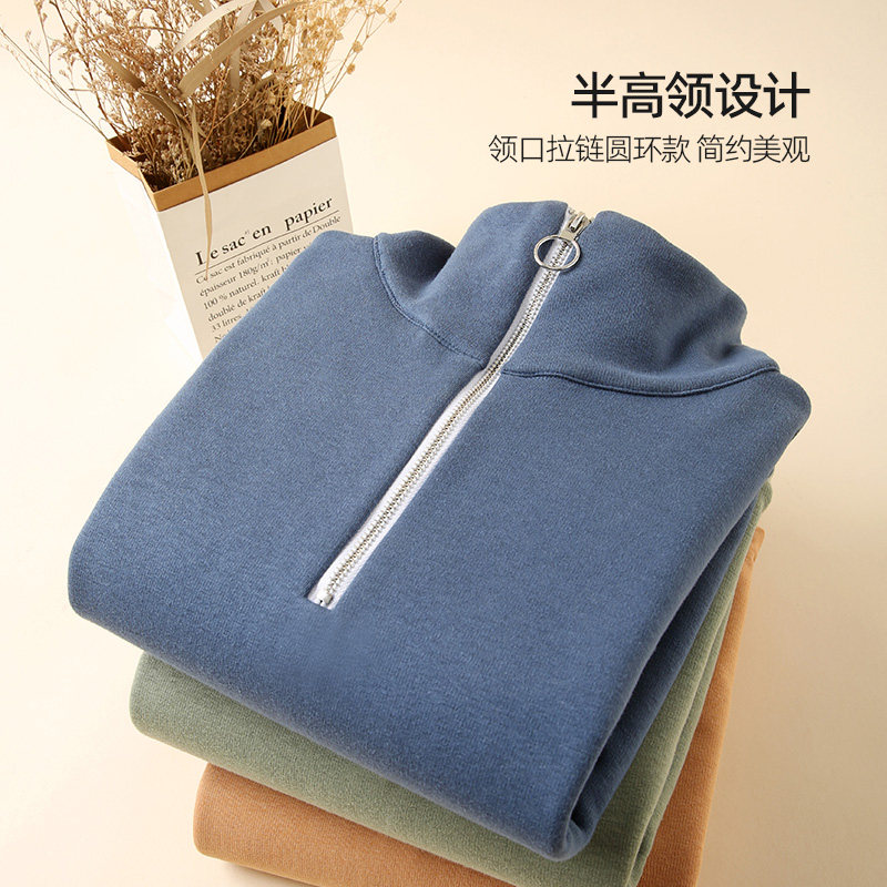 Толстовка, утепленные джинсы с начесом с молнией, куртка, высокий воротник, в корейском стиле, осенняя