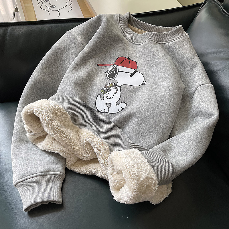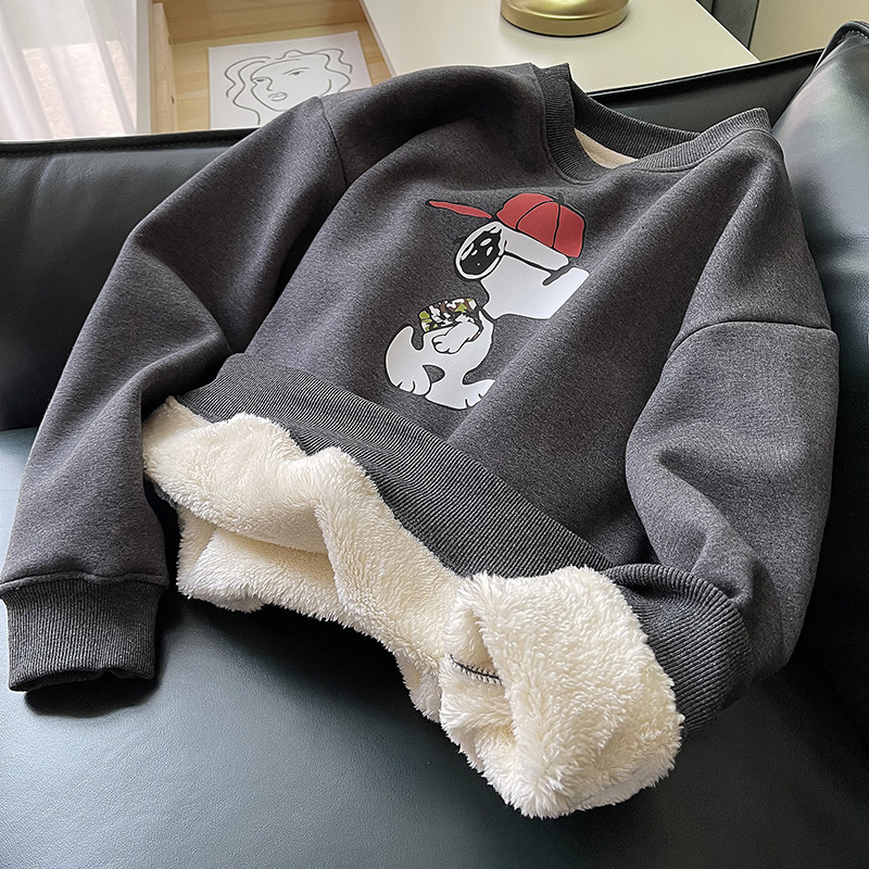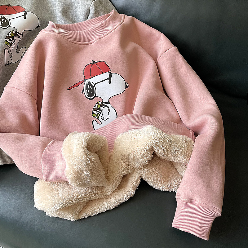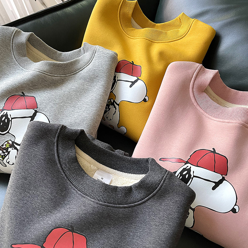 Мультяшная бархатная демисезонная удерживающая тепло флисовая толстовка с круглым воротником, коллекция 2021, в корейском стиле, увеличенная толщина