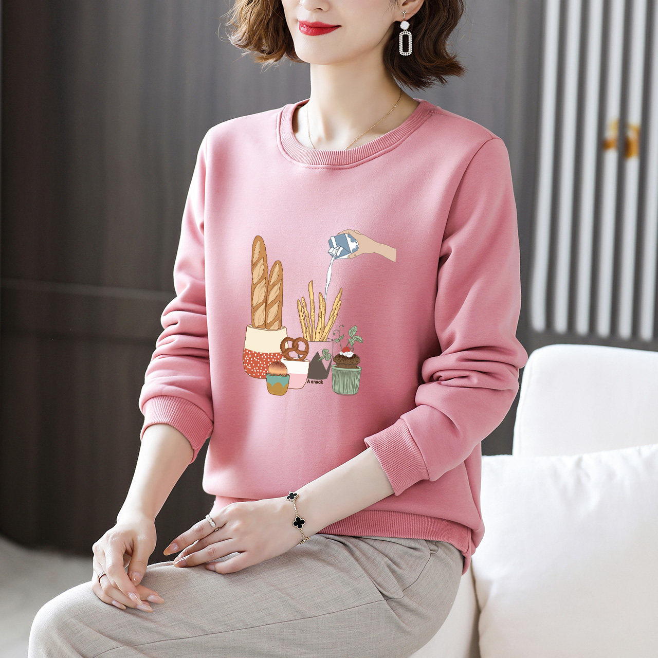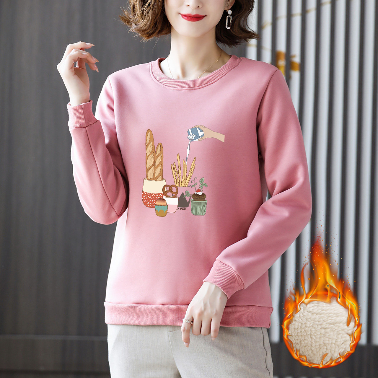 Утепленная бархатная толстовка с круглым воротником, большой размер