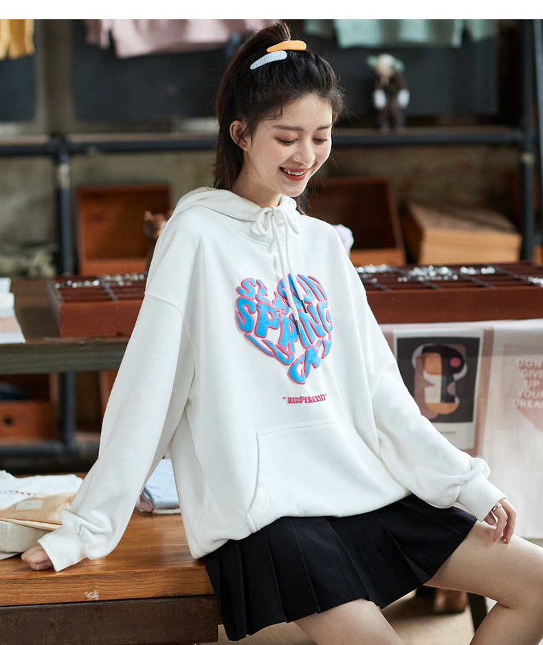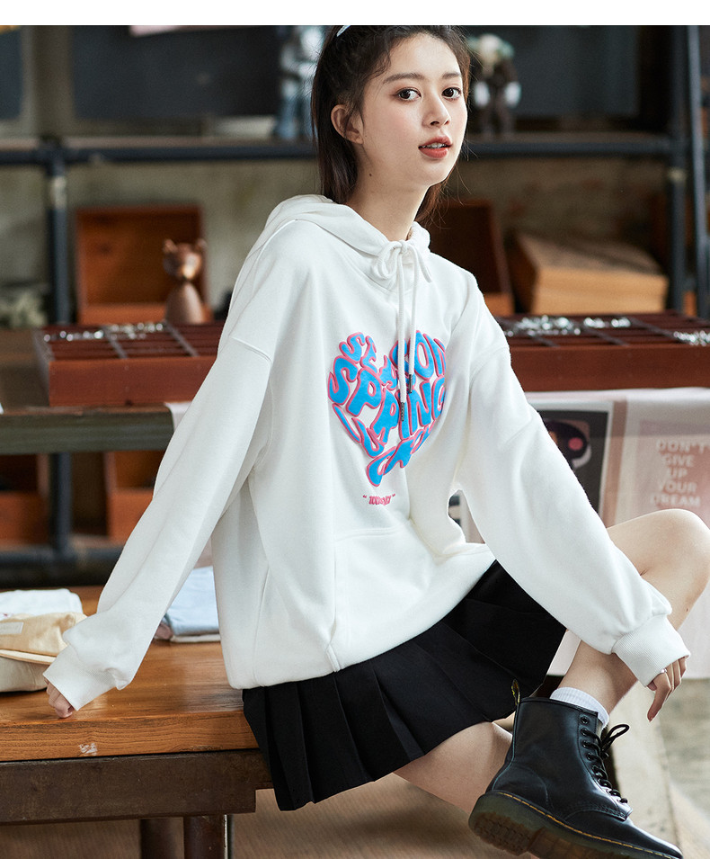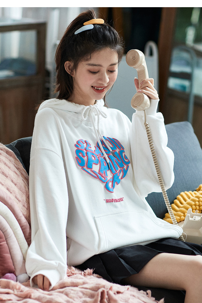 Осенняя тонкая оригинальная небольшая дизайнерская белая толстовка, коллекция 2021, оверсайз