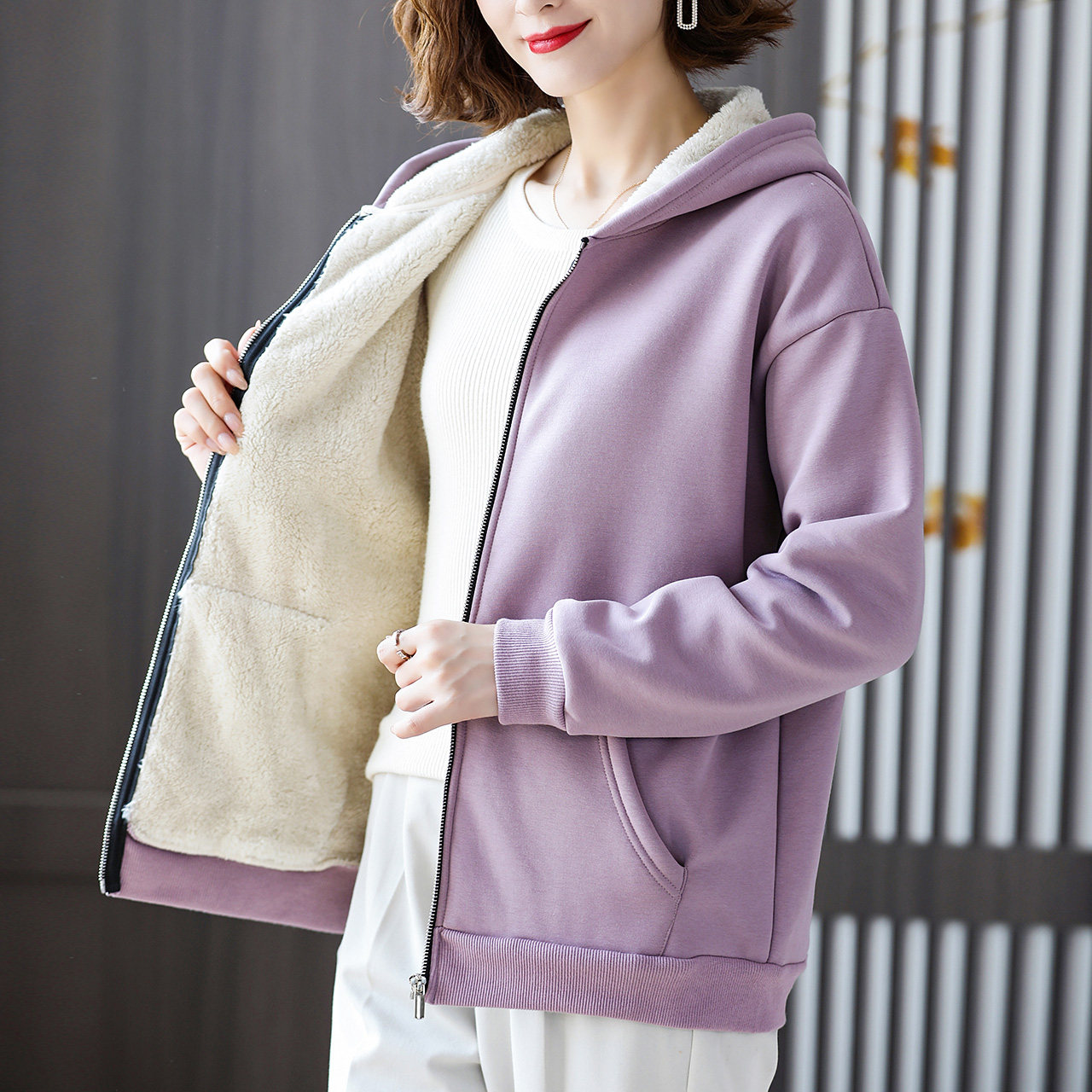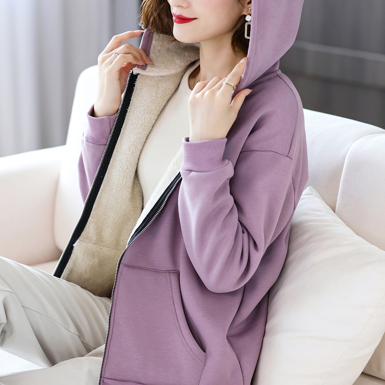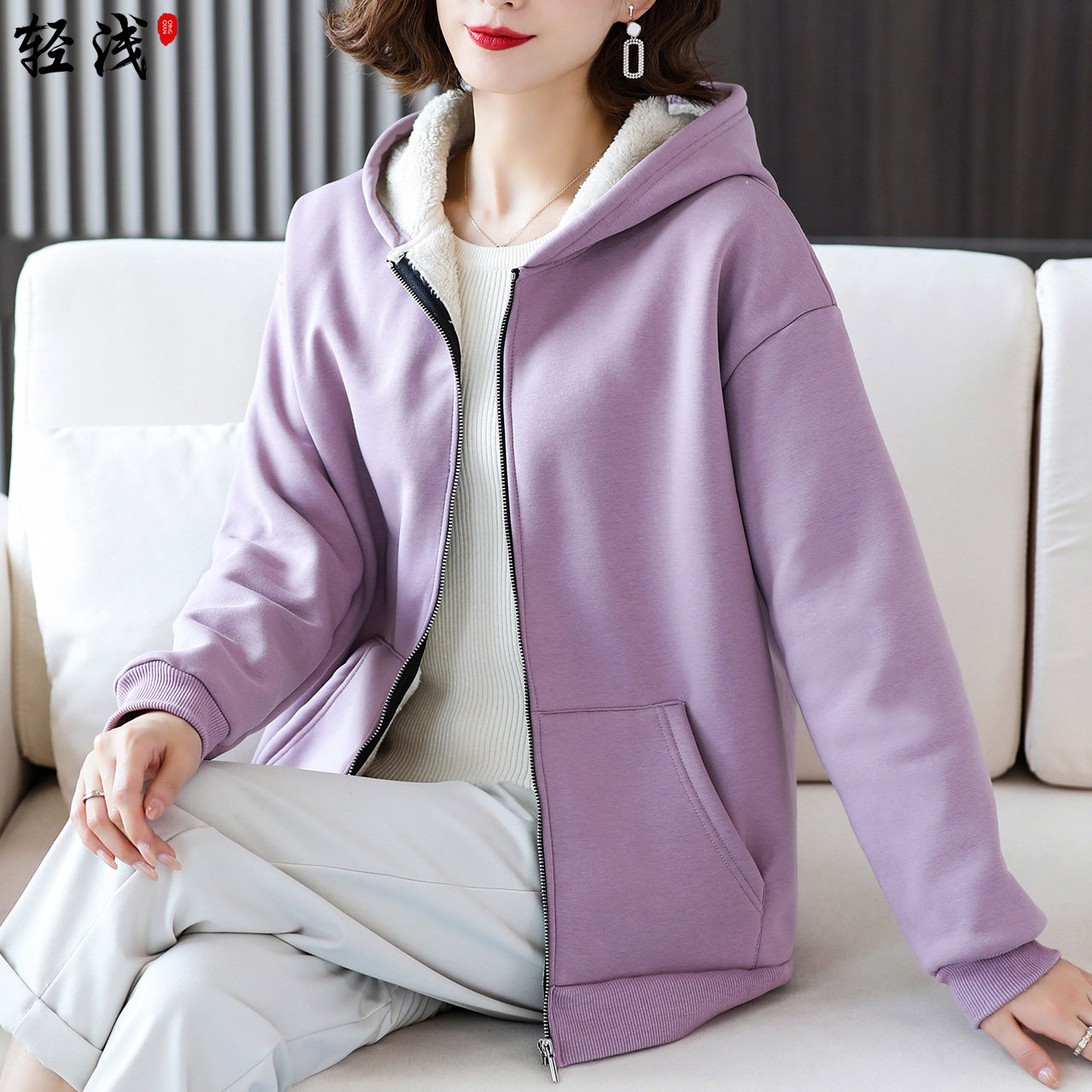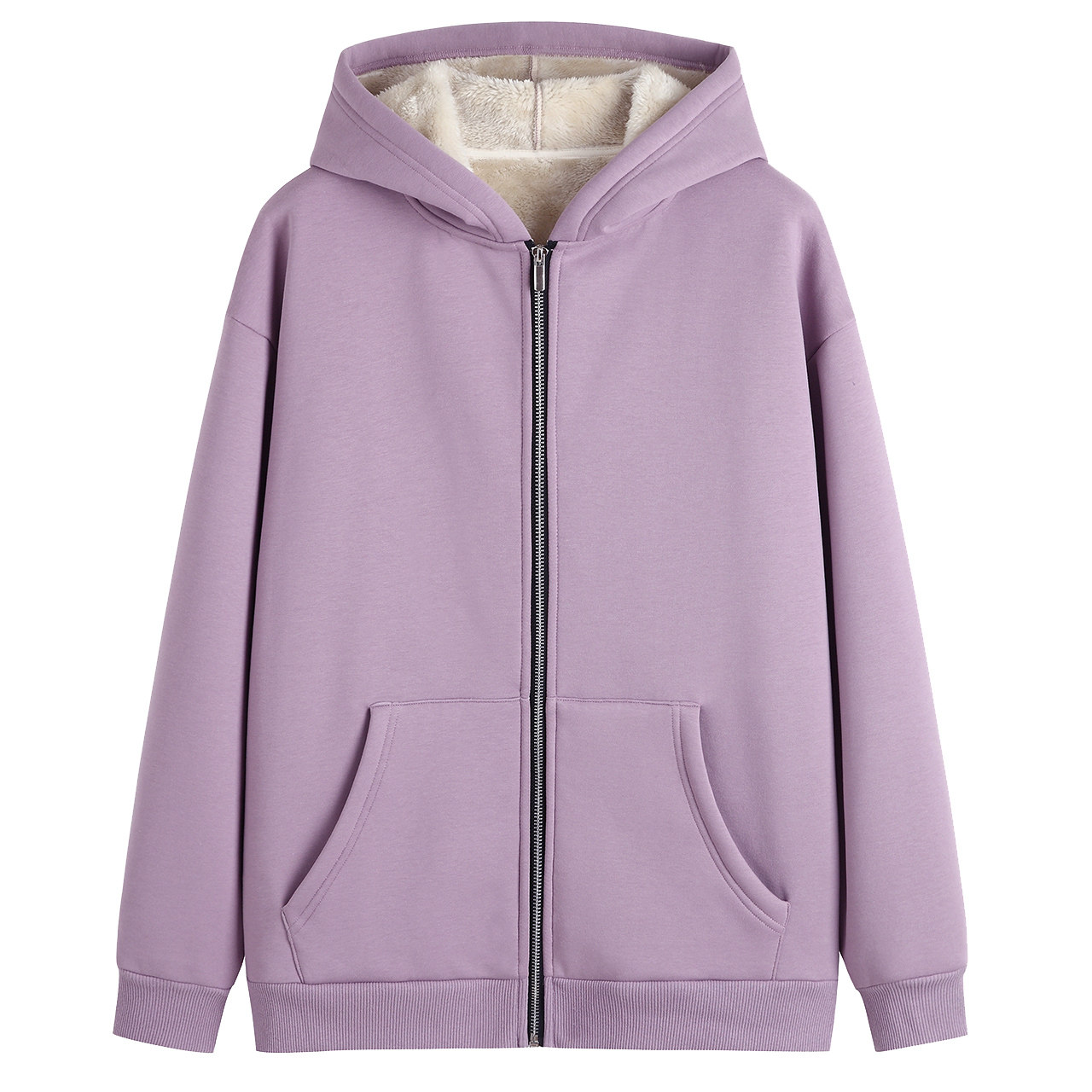 Сиреневая утепленная куртка, пуховик, толстовка с капюшоном, кардиган с молнией, увеличенная толщина