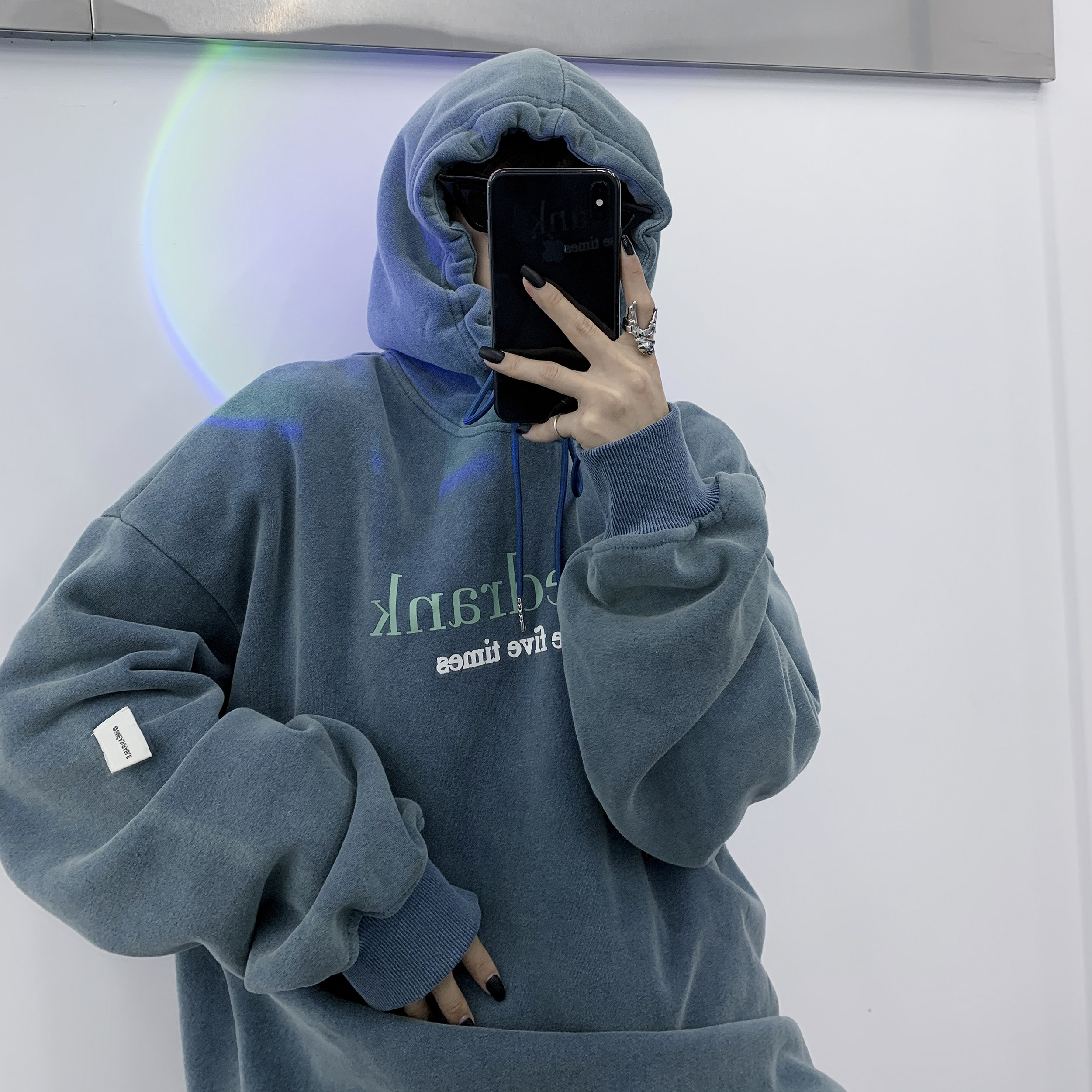 Брендовая утепленная флисовая зимняя толстовка с капюшоном, в американском стиле, для влюбленных, оверсайз