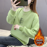 Комплект, толстовка, демисезонные утепленные короткие джинсы с начесом, коллекция 2022, в корейском стиле, в западном стиле, высокий воротник