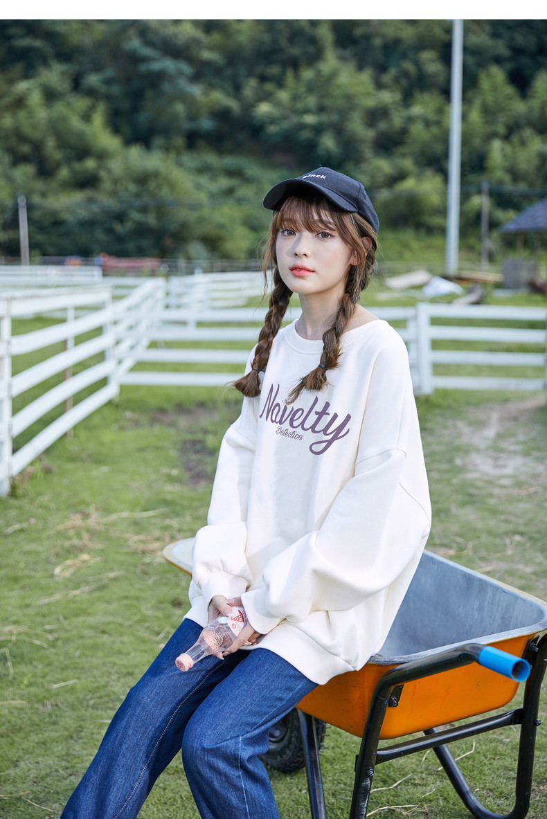 Осенняя небольшая толстовка с круглым воротником, дизайнерская белая куртка, коллекция 2021, оверсайз