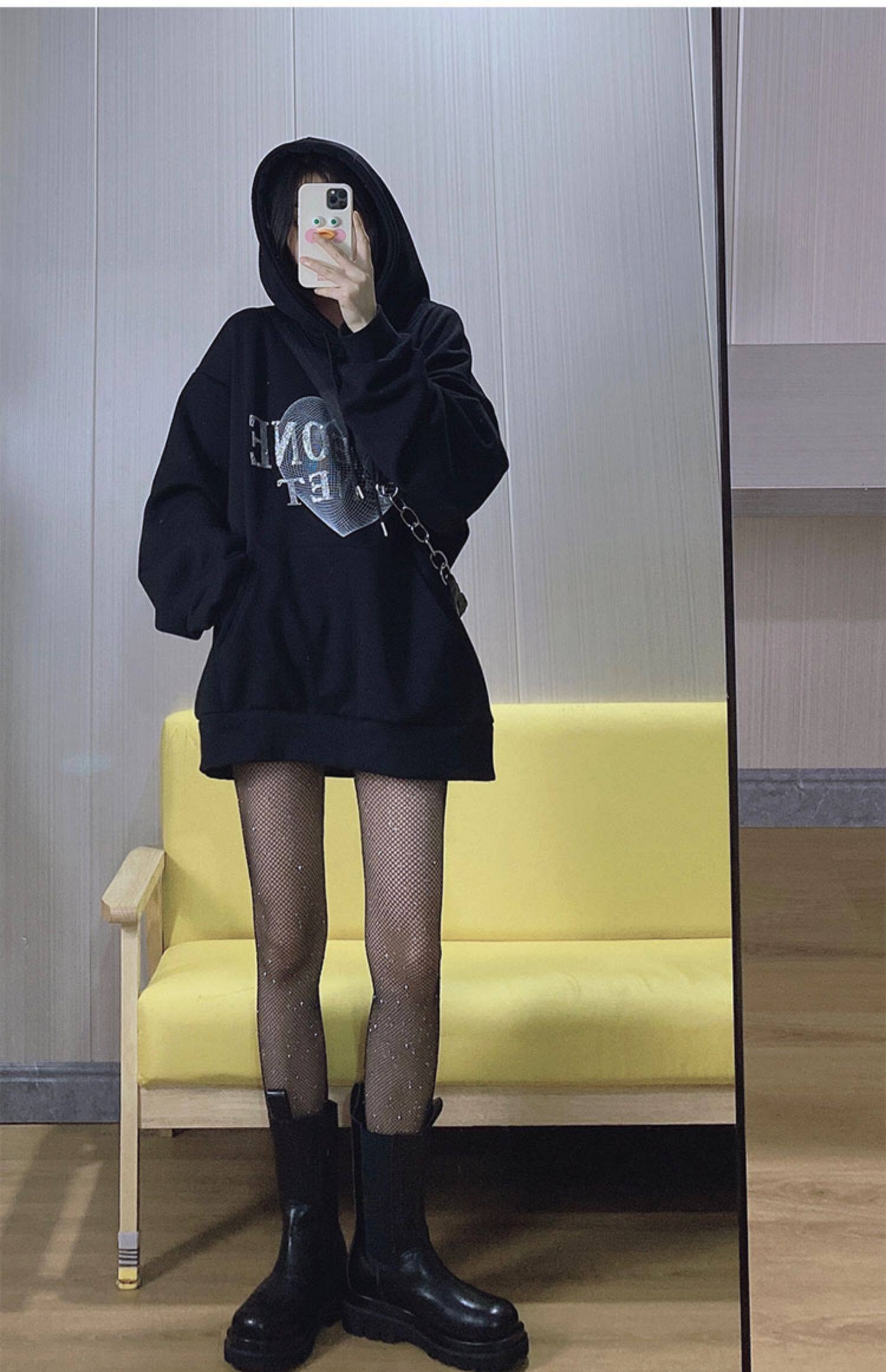 Tide, черная демисезонная утепленная дизайнерская длинная толстовка, коллекция 2022, оверсайз, тренд сезона, средней длины